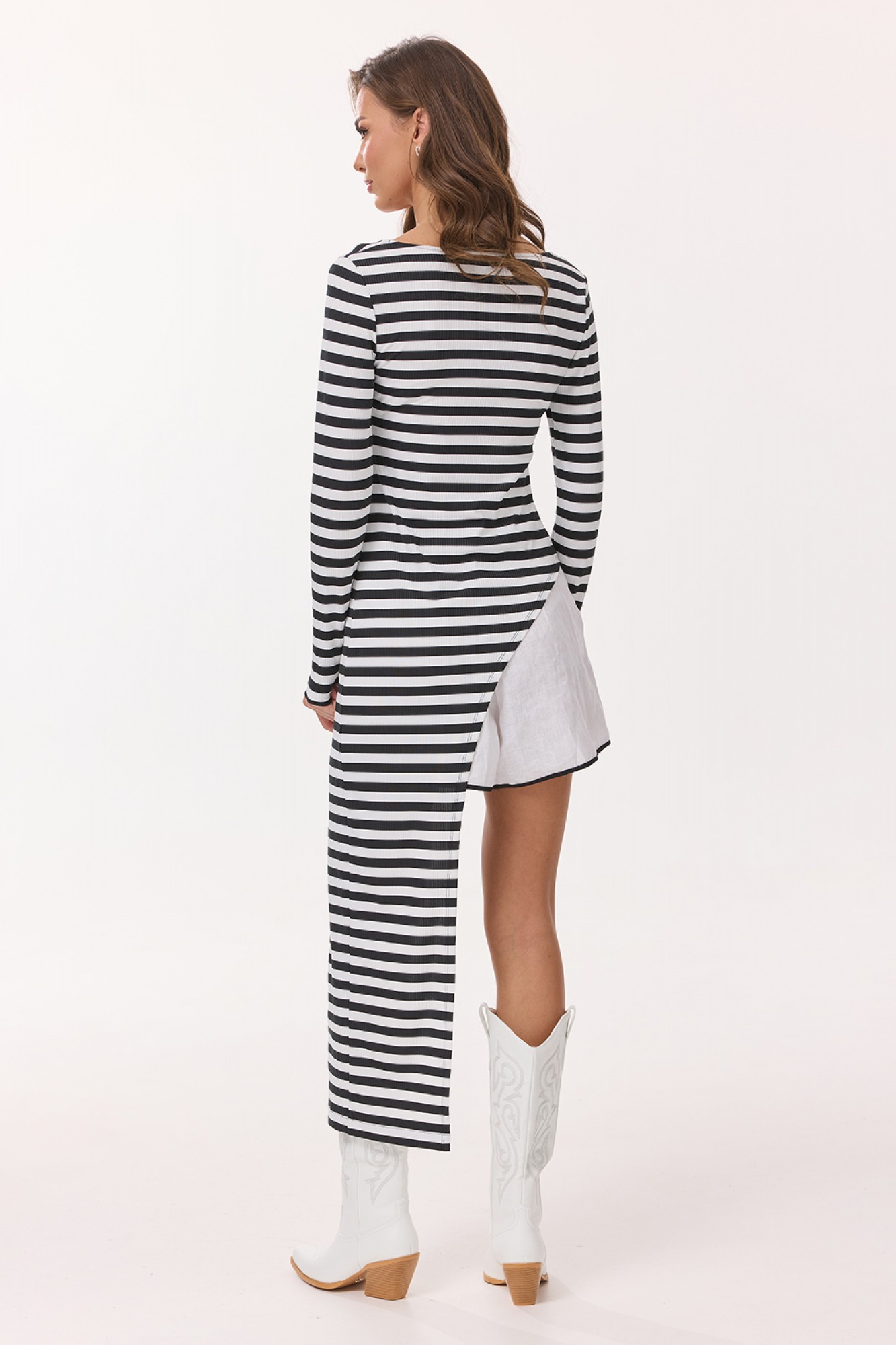Стильный трикотажный джемпер, с асимметричным вырезом, полуприлегающего силуэта, удлиненный с втачным одношовным рукавом. Вырез горловины полочки каре.