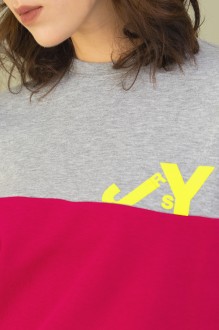Перед и спинка с горизонтальным подрезом переходящим в подрез рукава. Декор - принт на полочке и спинке в контрастном цвете.