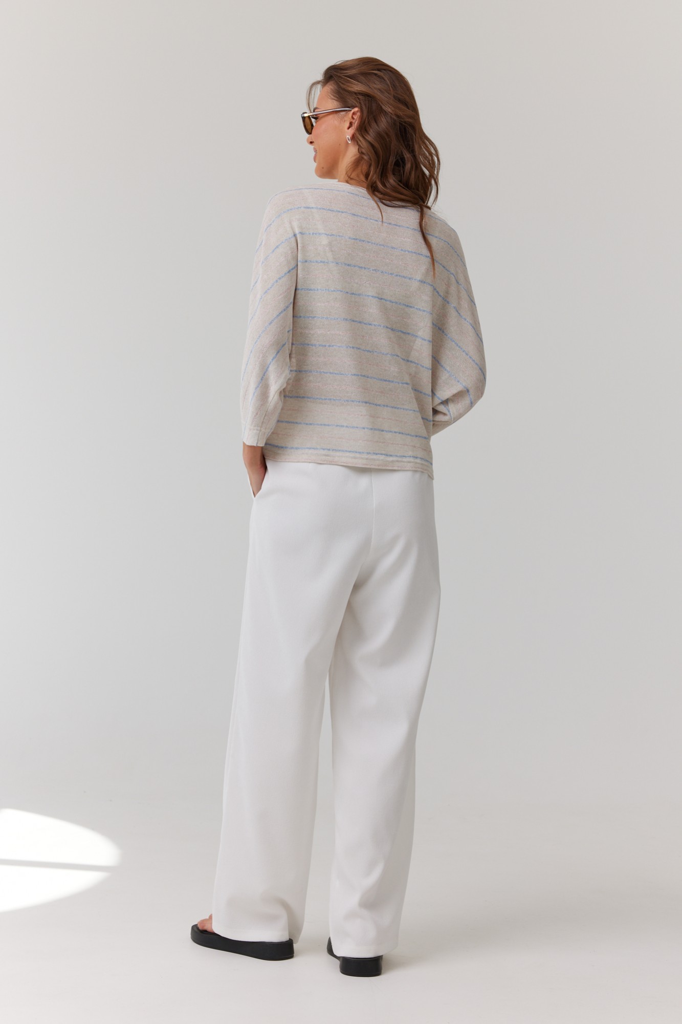 Джемпер из трикотажного полотна, кроя «летучая мышь». Перед цельнокроеный с рукавом. Спинка цельнокроеная с рукавом. Рукав ¾, к низу заужен. Горловина округлой формы. Декоративные элементы и фурнитура могут отличаться от заявленных на фото. Цвет материала может отличаться по тону в зависимости от настроек вашего монитора!