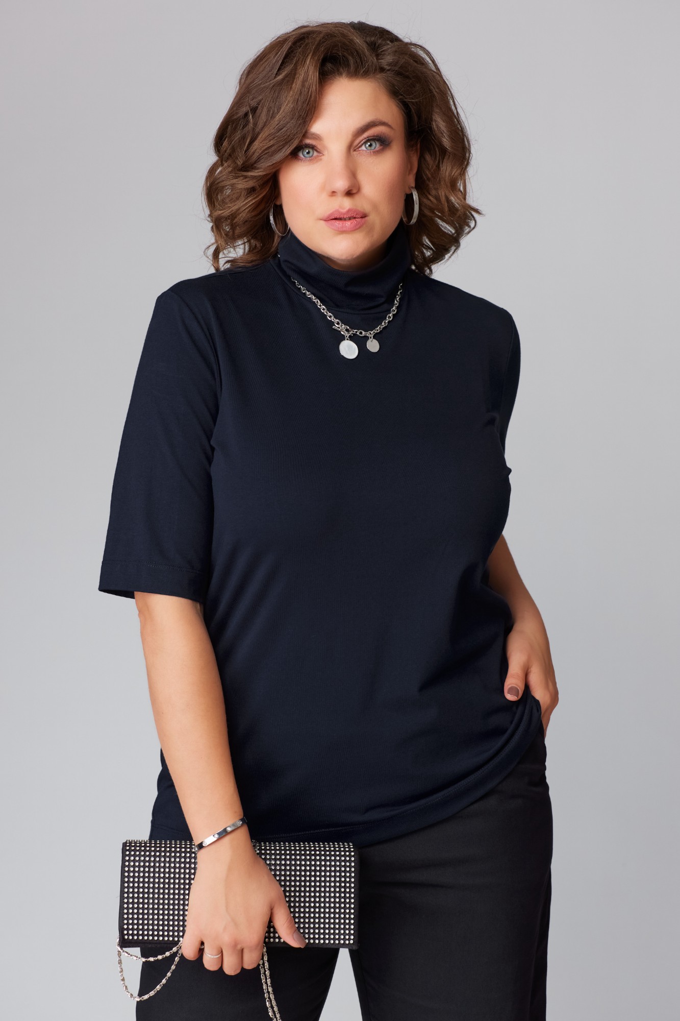 Джемпер прямого кроя, с воротником стойка и с рукавом 3/4 -базовый