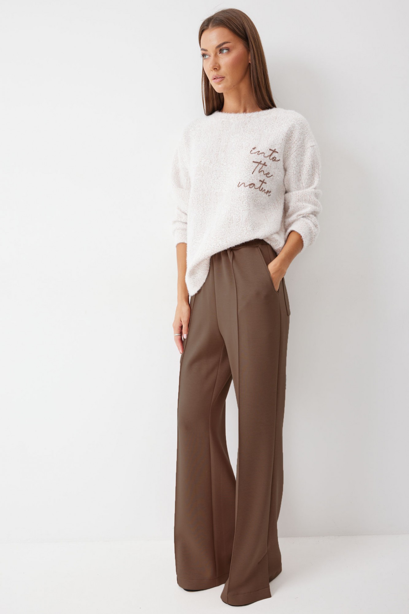 Джемпер прямого силуэта из комфортного трикотажного полотна. Горловина округлая. Рукав со спущенной линией плеча, по низу манжета. По низу джемпера в боковых швах разрезы. По переду дизайнерская вышивка. Обращаем ваше внимание, что фурнитура может отличаться от фото.