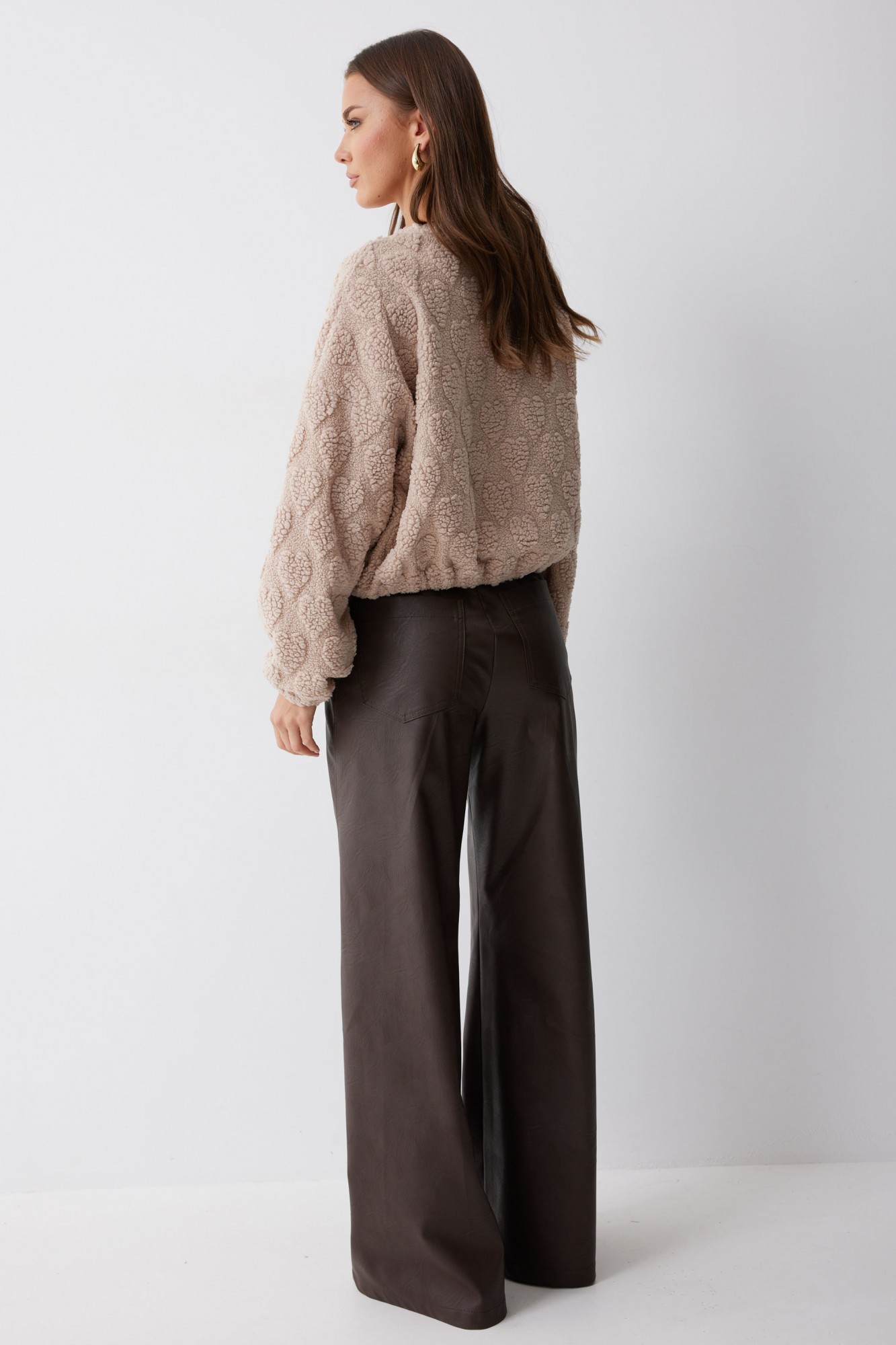 Укороченный джемпер прямого силуэта из трикотажного полотна. Горловина округлая. Рукав со спущенной линией плеча, по низу резинка. По низу джемпера резинка.