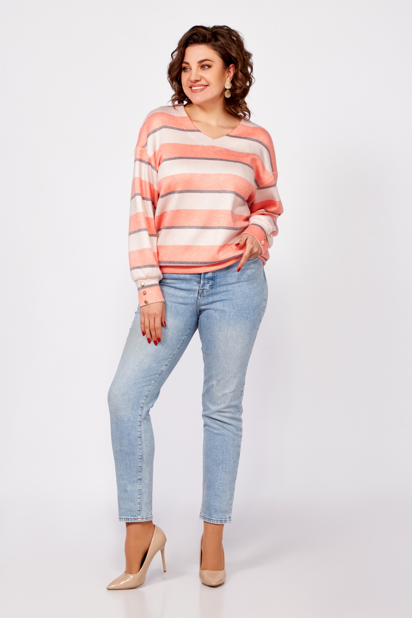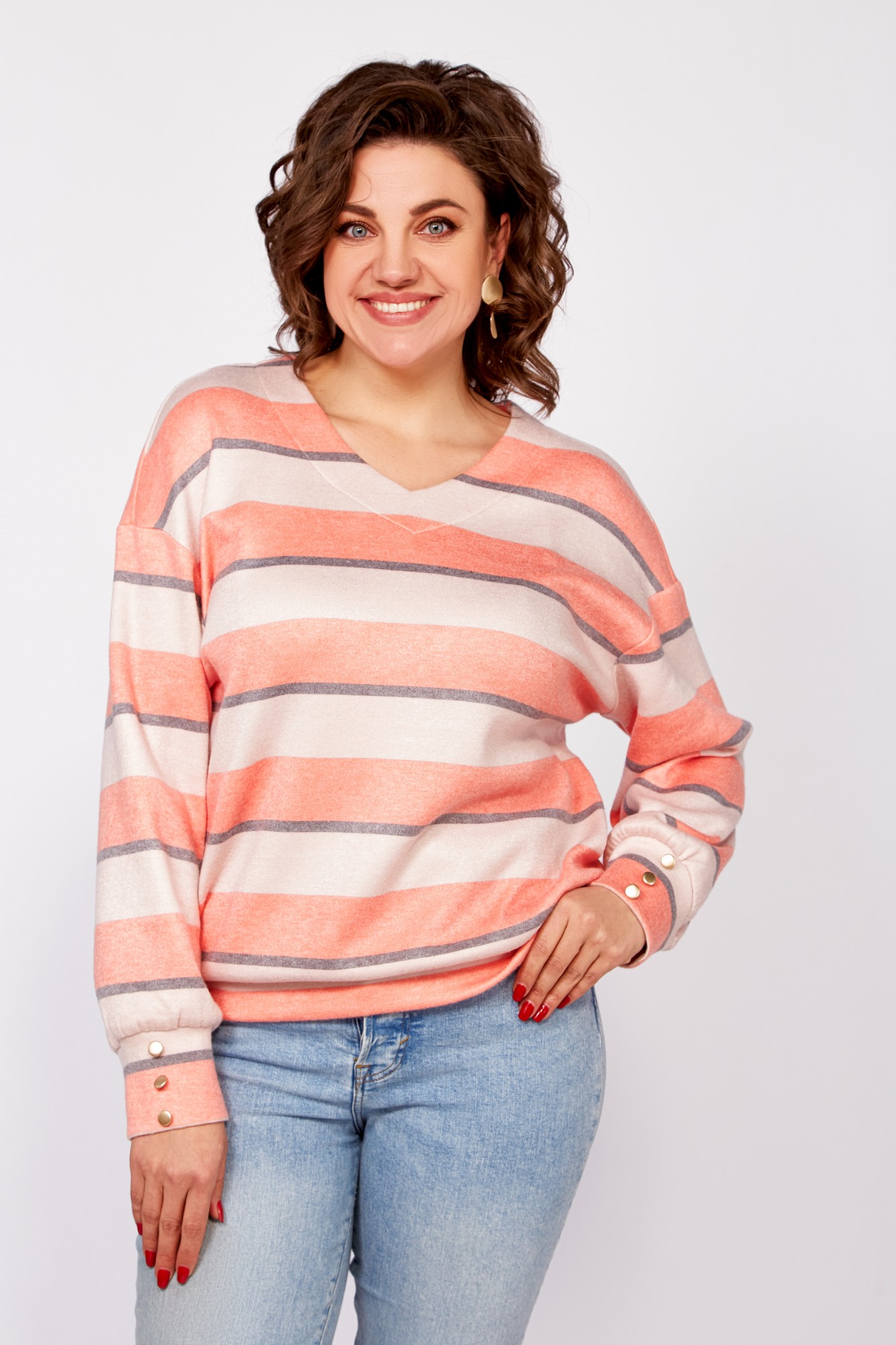 Джемпер (кофта) Swallow 800 .4 Полоска кремово-бежевая, серая, лососевая