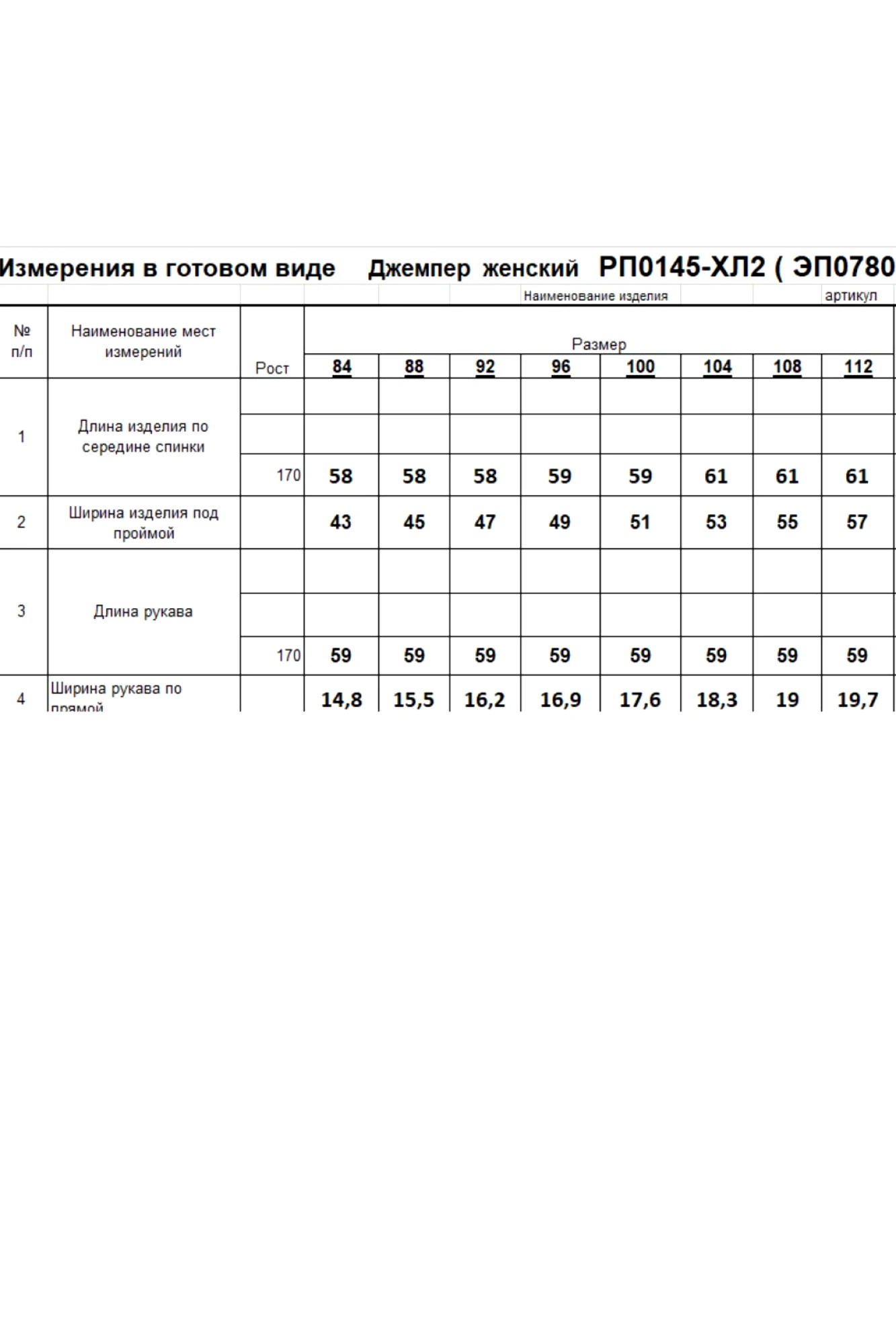 Таблица размеров
