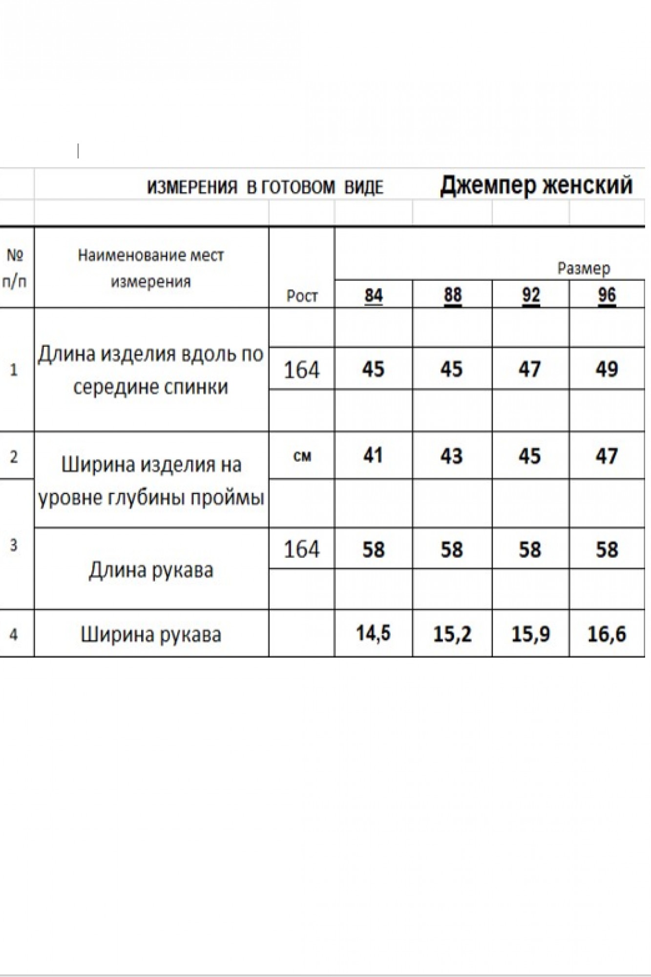 Таблица размеров