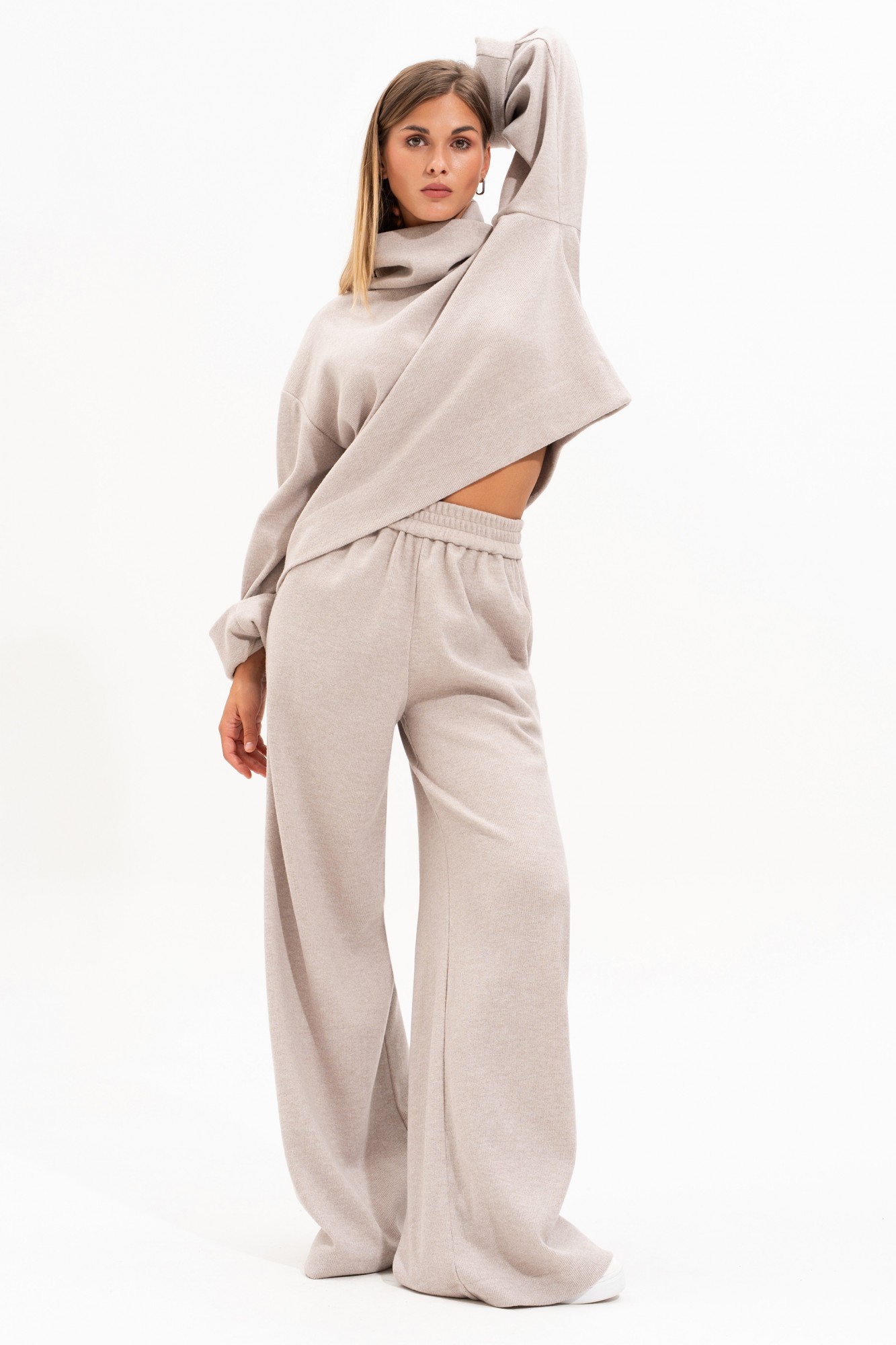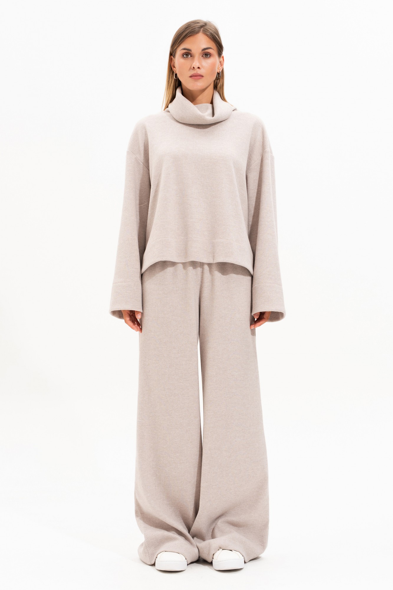 Джемпер оверсайз с длинным рукавом на спущенной пройме. Горловина округлой формы с объемным воротником стойкой. Изделие выполнено из мягкого трикотажного полотна, которое сочетает в себе благородный внешний вид и приятную текстуру.