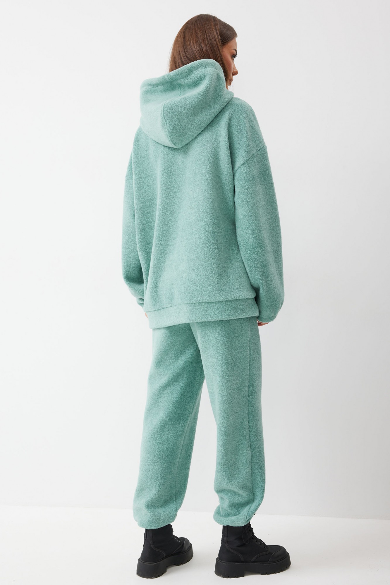 Джемпер прямого силуэта из комфортного трикотажного полотна. Горловина обработана капюшоном. Рукав со спущенной линией плеча, по низу на резинке. По низу джемпера притачной пояс. По переду декоративная нашивка и шнур. Обращаем ваше внимание, что фурнитура может отличаться от фото.