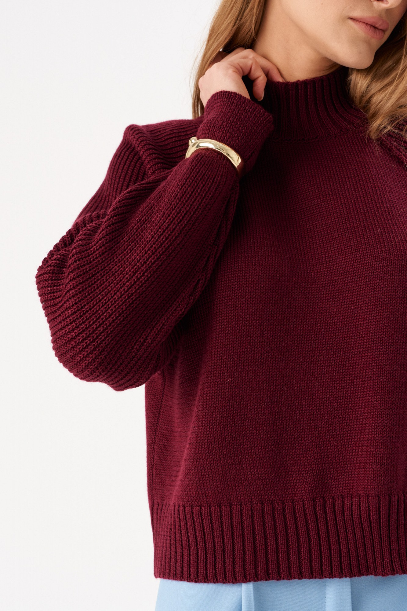 Стильный джемпер с высоким воротом и объёмными рукавами. Этот джемпер станет идеальным дополнением вашего гардероба, сочетая в себе уют и современный стиль. Изготовленный из мягкой и качественной пряжи, он подарит вам тепло и комфорт в прохладные дни.