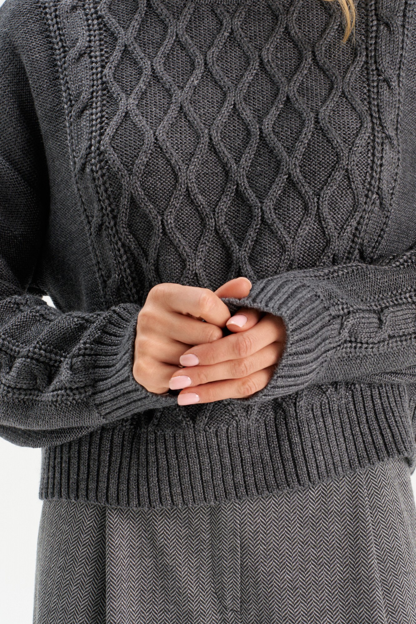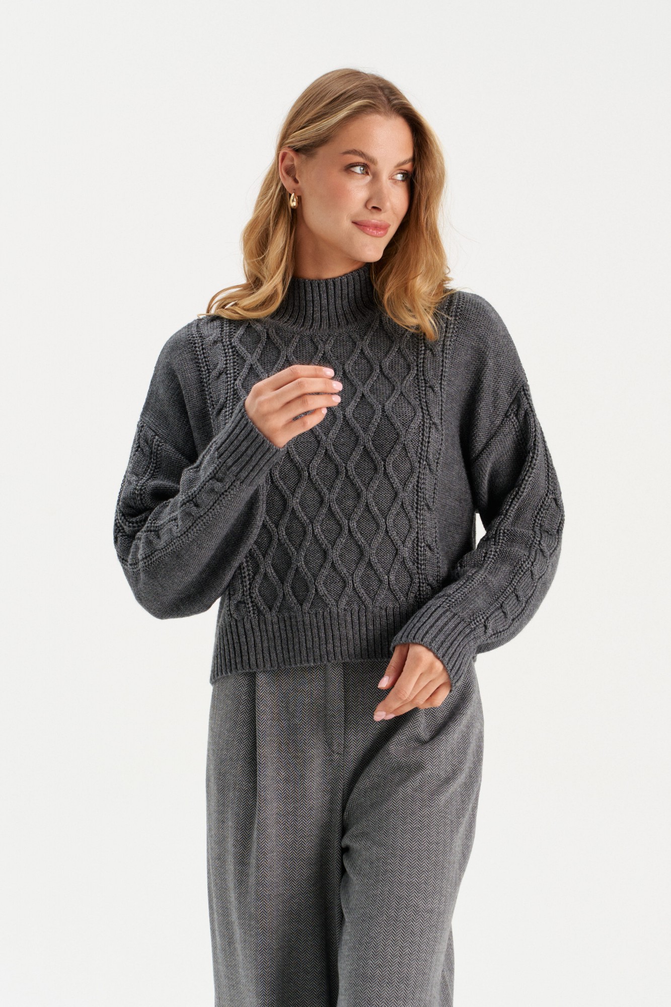 Элегантный джемпер с узором ромбы и высоким воротом. Этот джемпер станет стильным акцентом вашего гардероба. Изготовленный из мягкой и качественной пряжи, он идеально подходит для прохладных дней, обеспечивая тепло и уют.