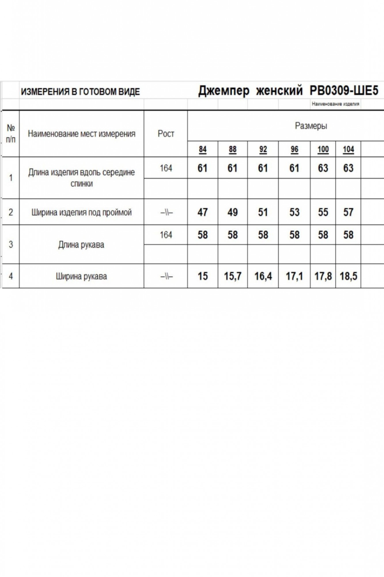 Таблица размеров