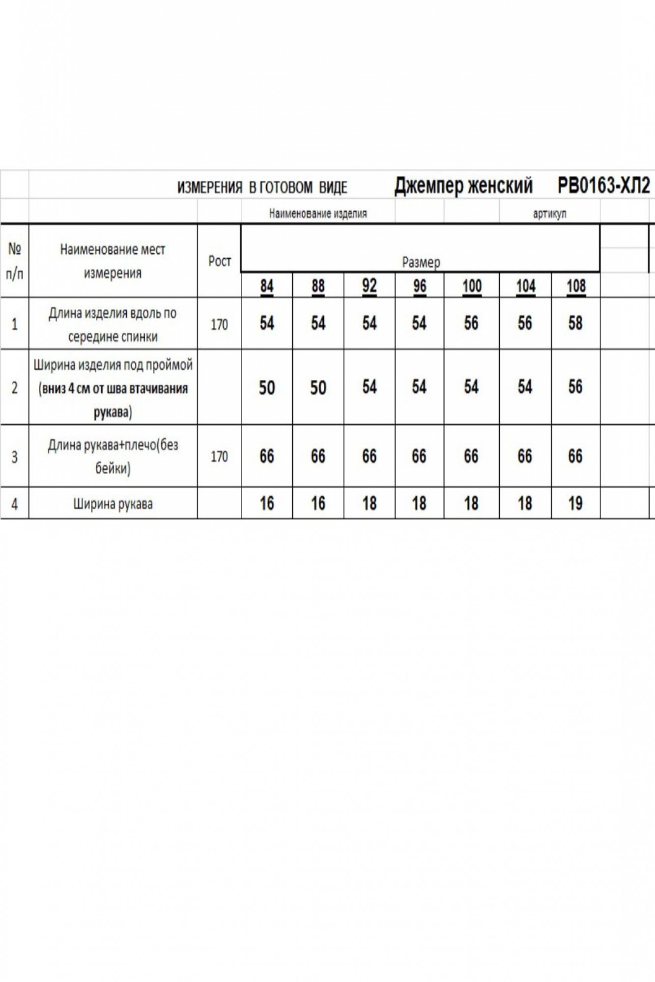 Таблица размеров