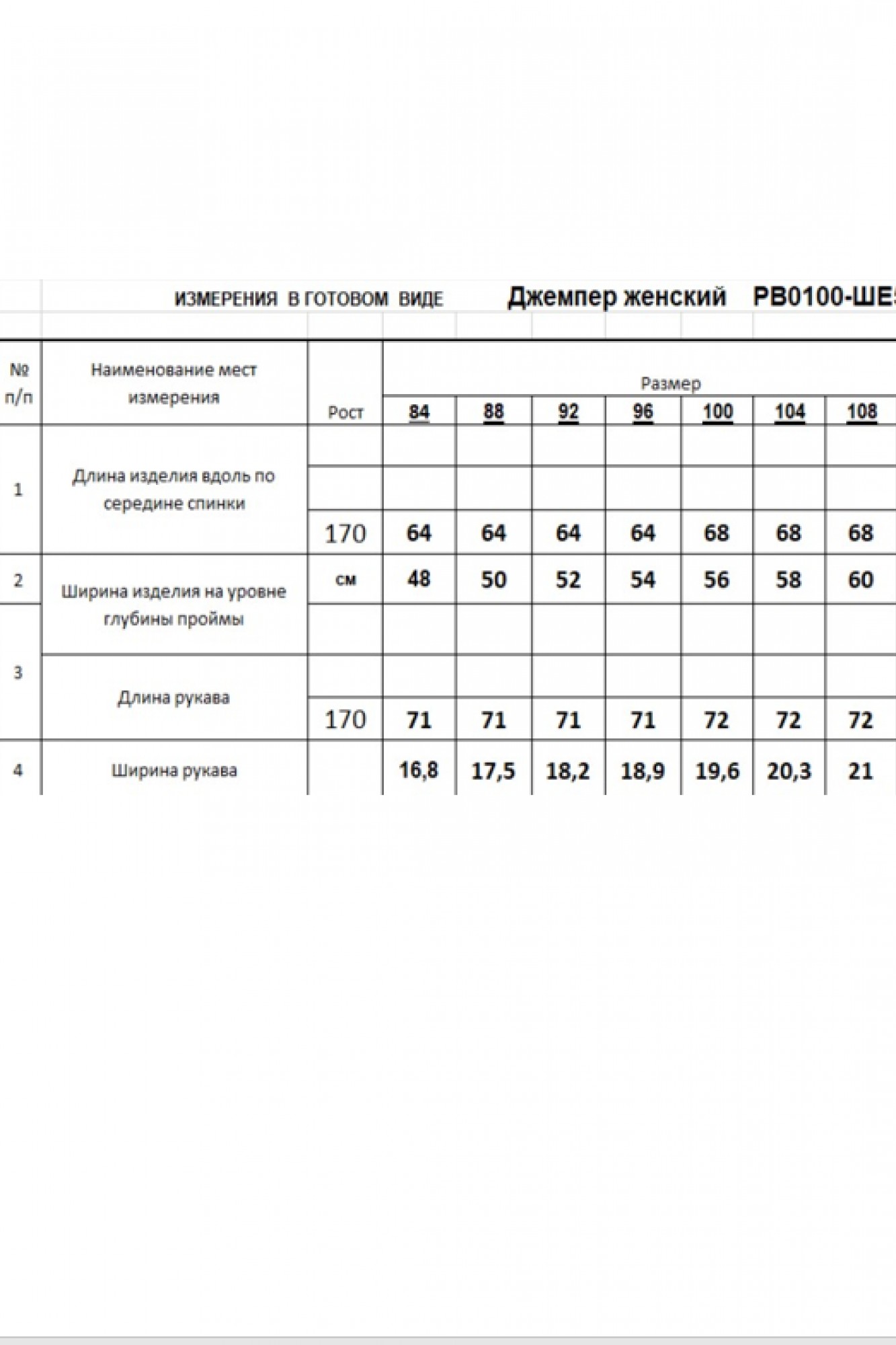 Таблица размеров