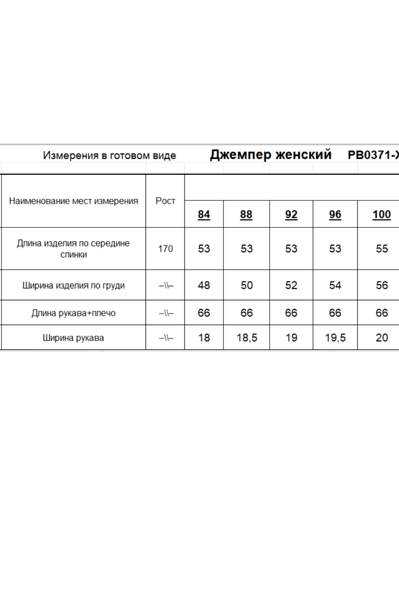 Таблица размеров
