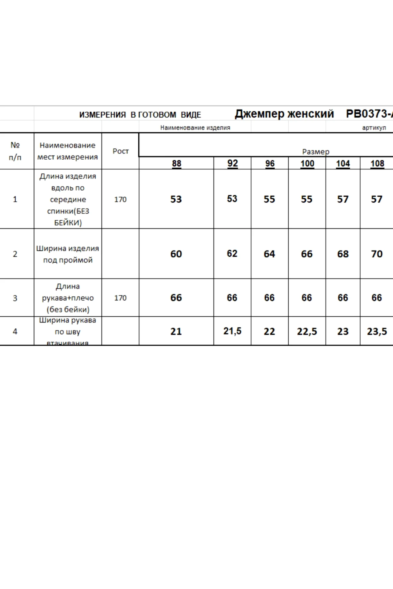 Таблица размеров