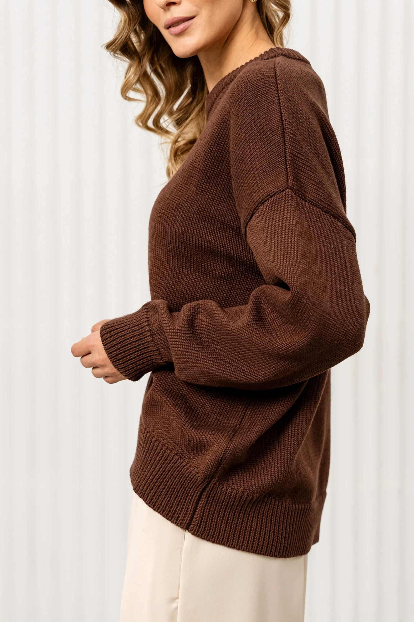 Крой: свободный, слегка удлинённый, что делает свитер универсальным для различных стилей и случаев.