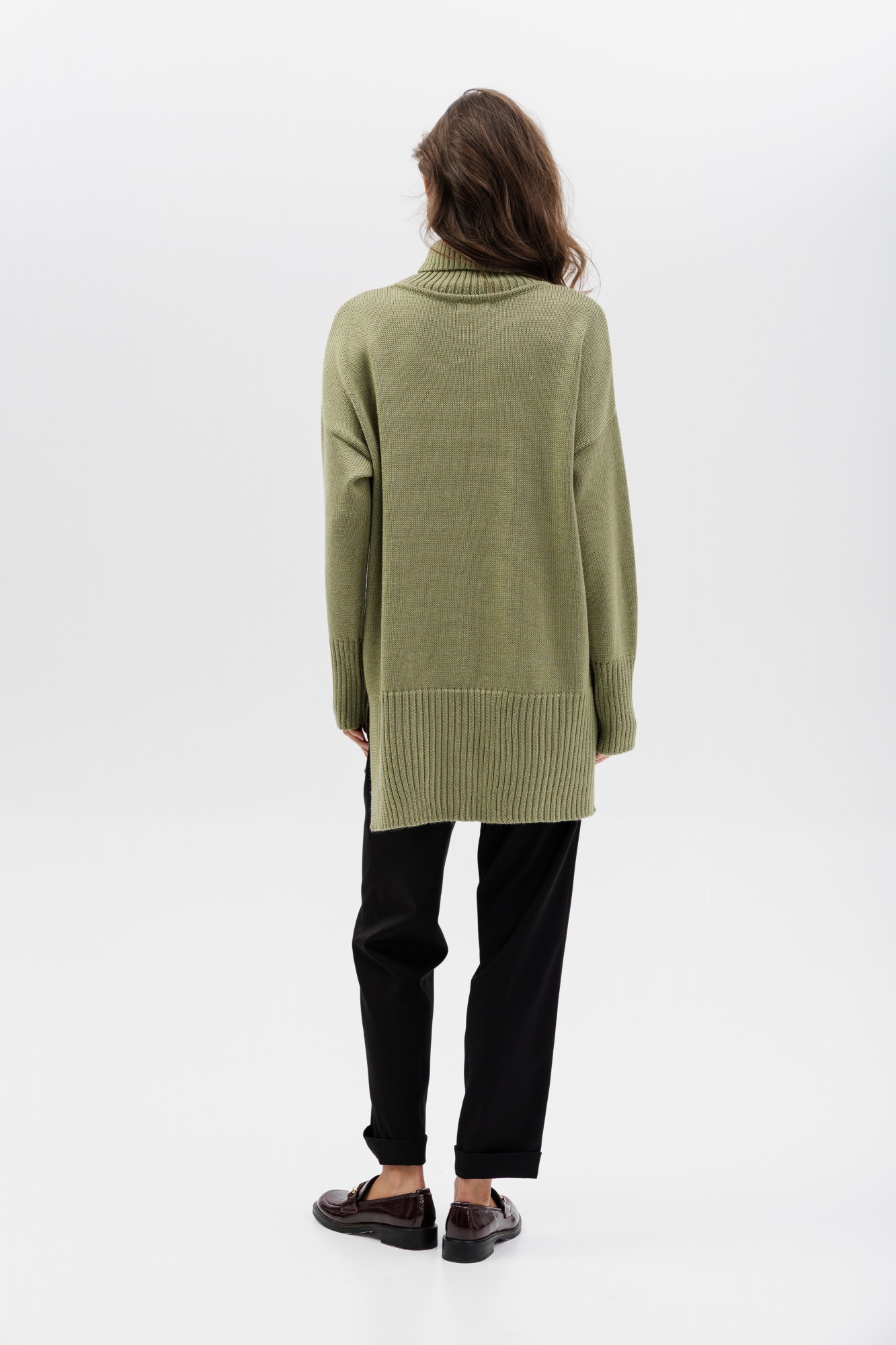 Очаровательный свитер с высоким воротником и объёмными рукавами. Этот стильный и уютный свитер станет идеальным дополнением вашего осенне-зимнего гардероба! Изготовлен из мягкой и приятной на ощупь пряжи, он обеспечивает максимальный комфорт и тепло в прохладные дни. Основные особенности: Цвет: светло-оливковый, есть еще в коричневом цвете, которые легко сочетаются с другими цветами в вашем гардеробе; Дизайн: высокий воротник-гольф и объёмные рукава придают свитеру современный и модный вид; Материал: качественная плотная вязка, которая сохраняет форму и обеспечивает долгий срок службы; Универсальность: подходит как для повседневных прогулок, так и для создания стильных луков на работу или встречи с друзьями. Свитер отлично сочетается с джинсами, юбками или брюками, а также дополнит ваш образ аксессуарами. Подчеркните свою индивидуальность с этим уютным и модным свитером! Уход: Рекомендуется стирка в деликатном режиме при температуре не выше 30°C. Не использовать отбеливатели. Сушить в расправленном виде.