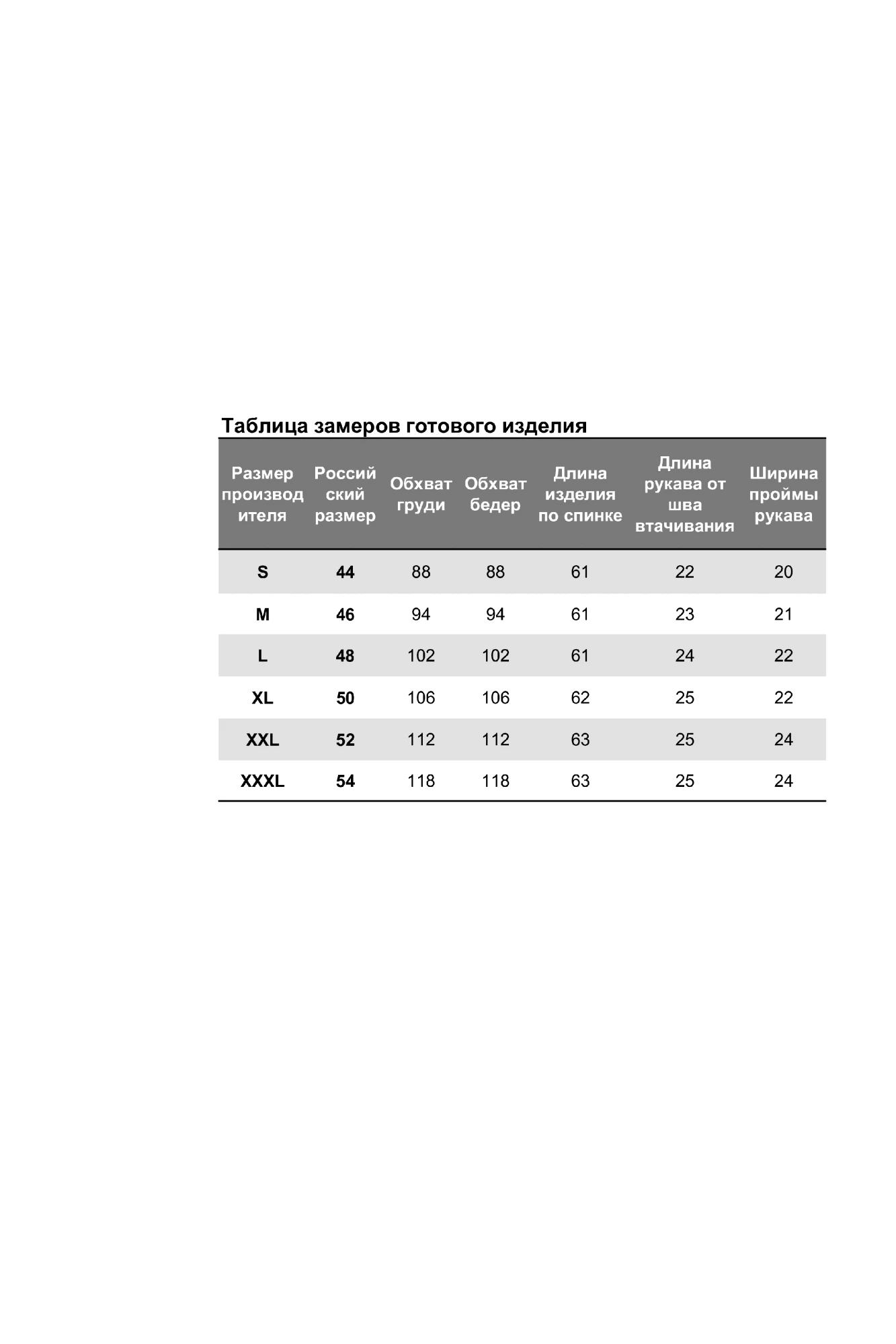 Размеры одежды