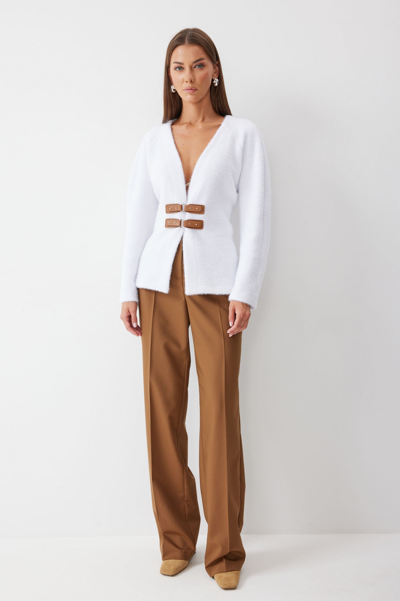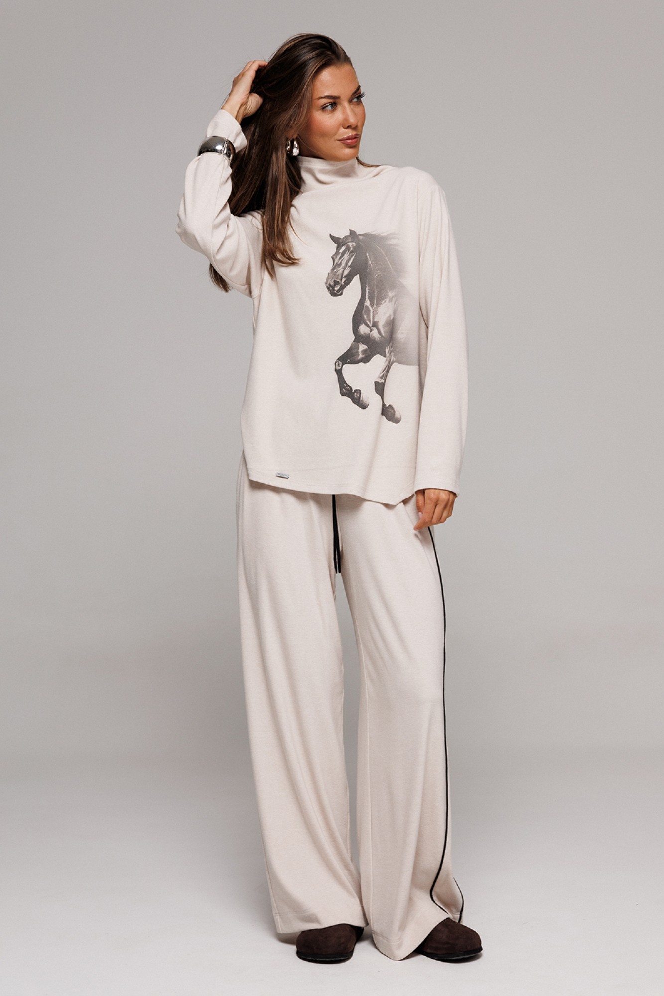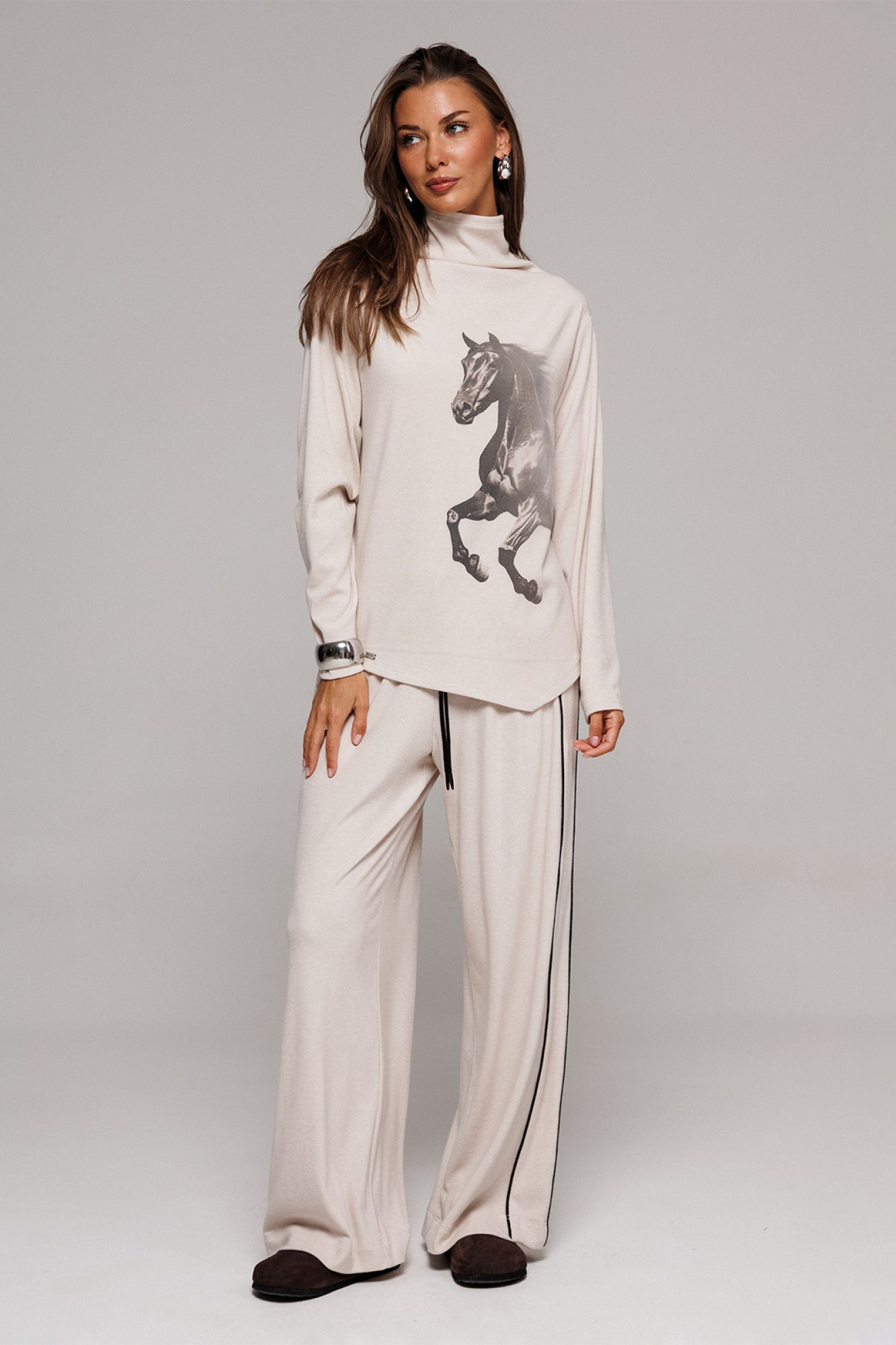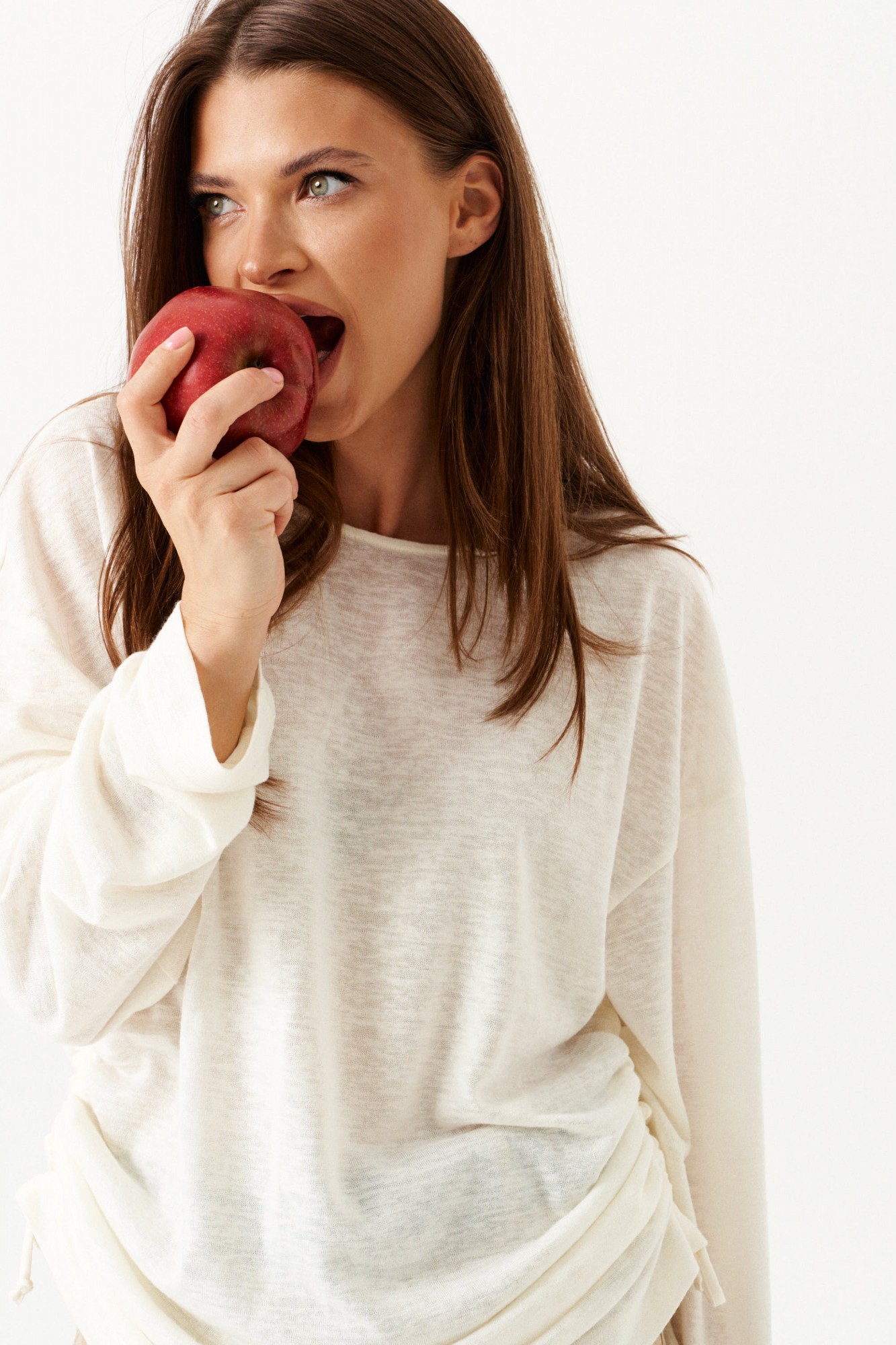 - Кашемир. Наиболее подходящий материал, благодаря которому вещь теплая и приятная на ощупь. Кашемировый джемпер не добавляет лишнего объема.
