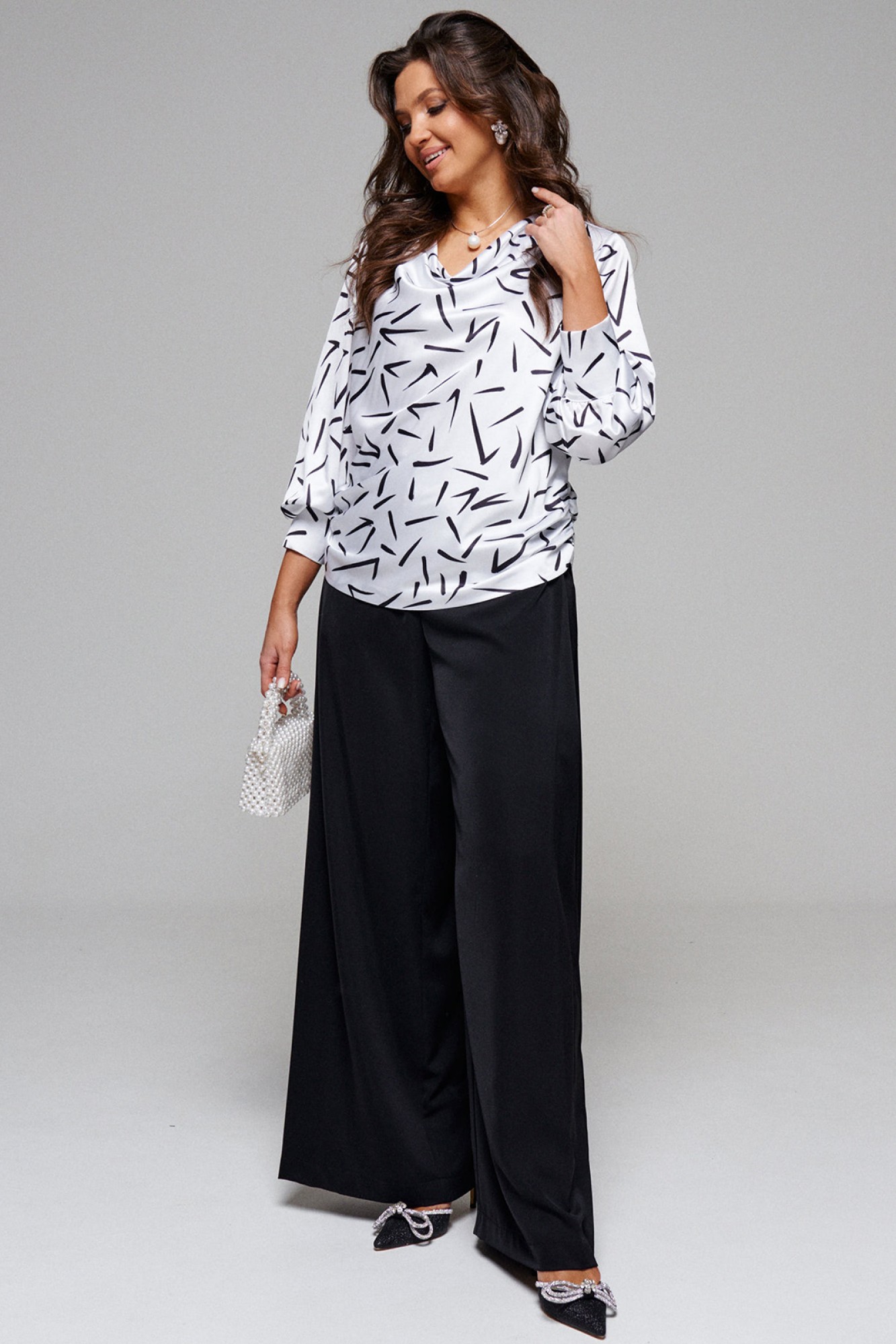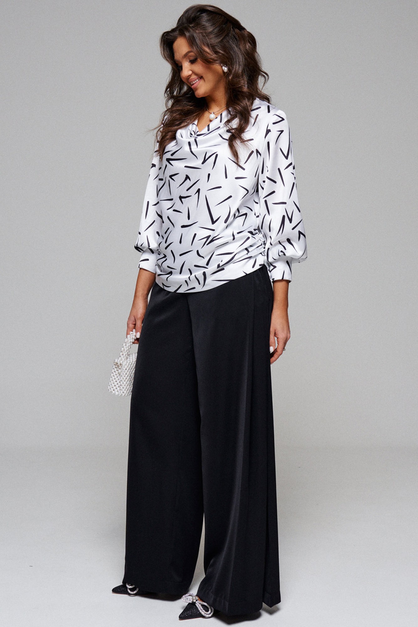 Изысканный нарядный образ состоит из 2-х элементов: блузки и брюк.