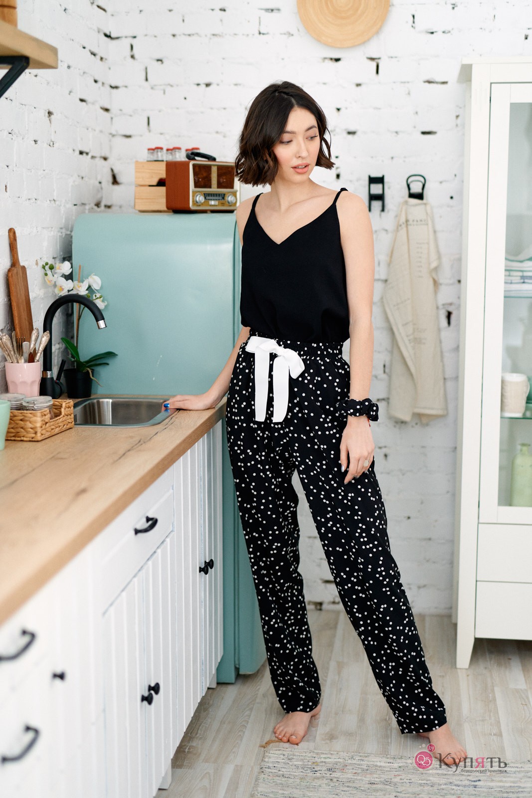 86 вискоза 14 пэ - топ; 100 пэ - брюки