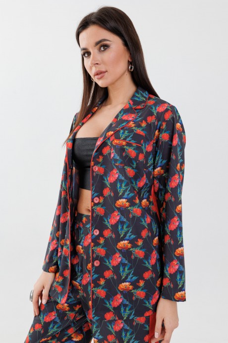 Классическая пижама с бархатными лампасами по боковым швам и актуальным принтом. Предназначена не только для дома, но и для смелых модниц для повседневной носки. В ней вам будет невероятно комфортно, как на работе, так и во время прогулки /свидания.