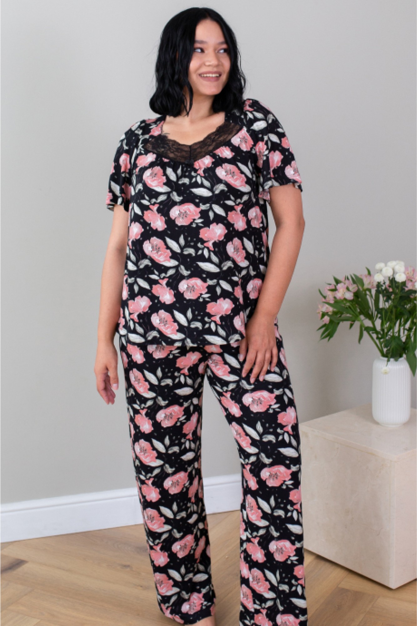 Женская пижама состоит из двух предметов - блузки и брюк. Изготовлена из натурального материала, приятного к телу. Цвет создает ощущение уюта и комфорта. Блузка с вырезом и короткими рукавами придает образу изысканность и женственность. Брюки с эластичным поясом и удобным кроем идеально садятся по фигуре, обеспечивая максимальный комфорт во сне и не только.