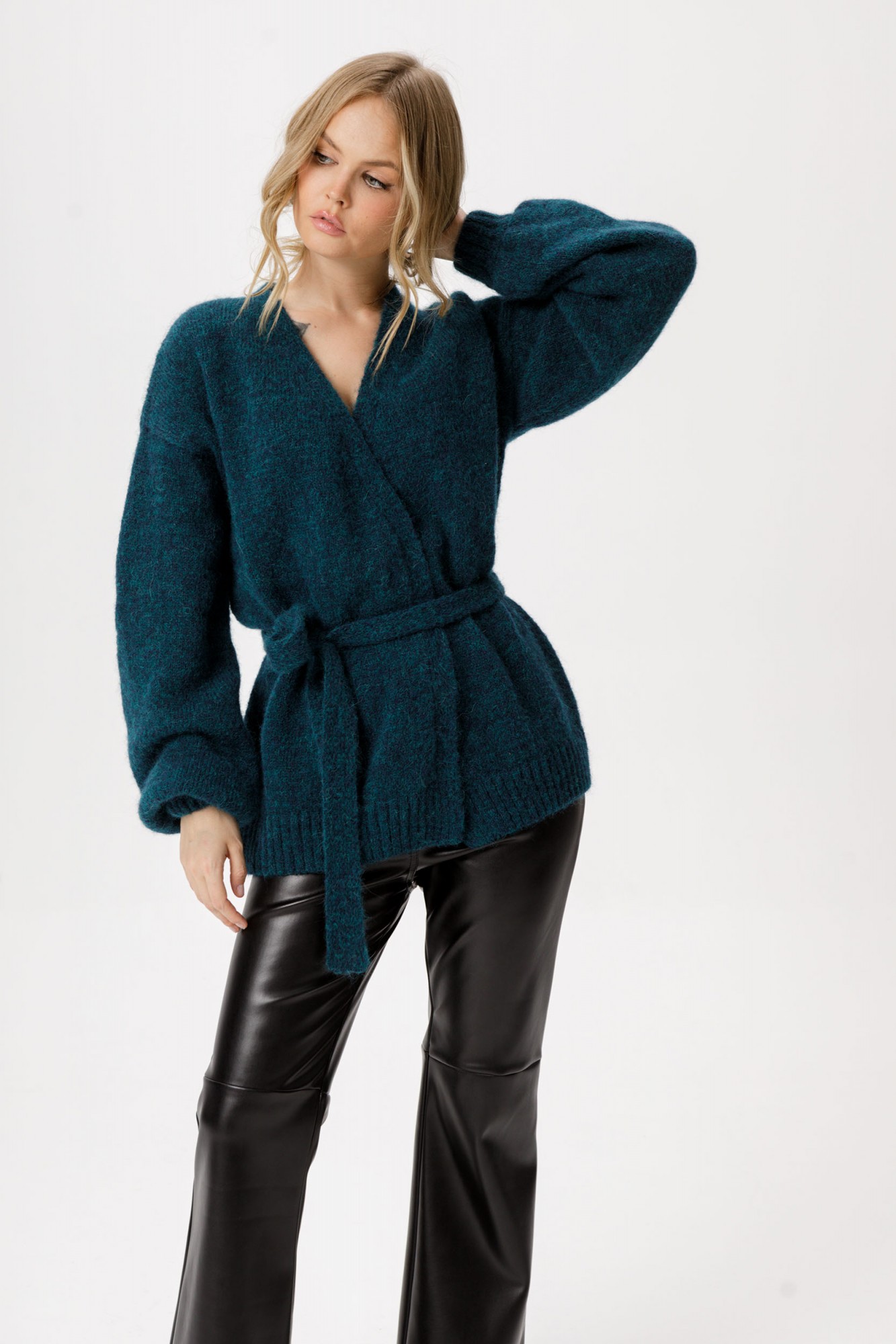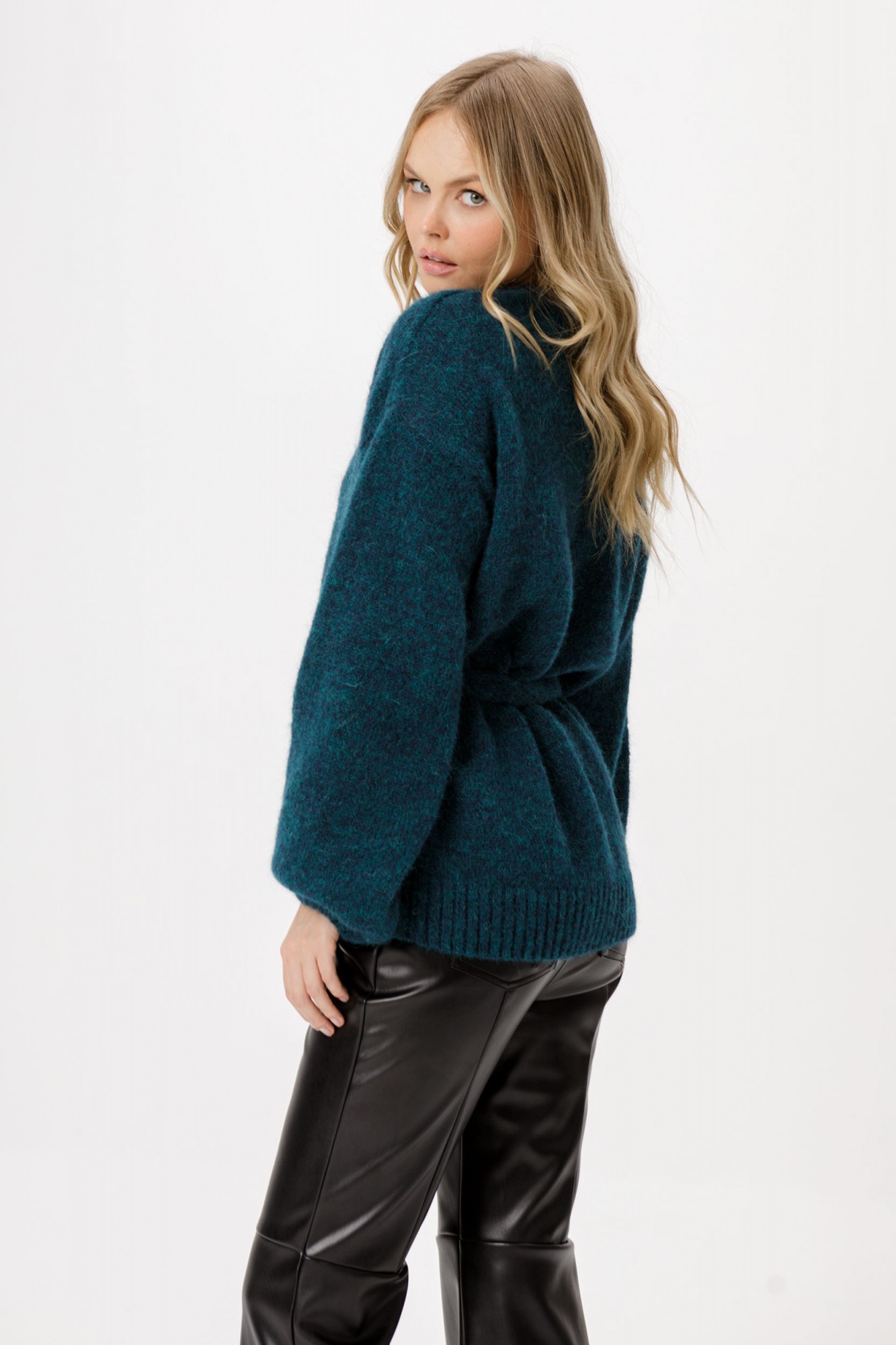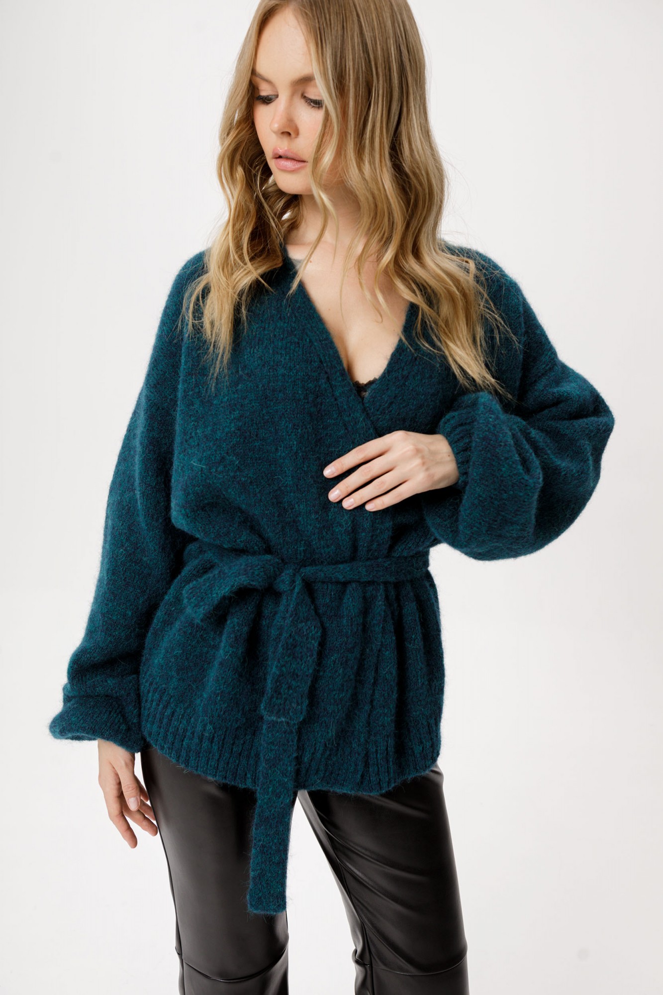 Вязаный свободный кардиган из шерсти альпака.