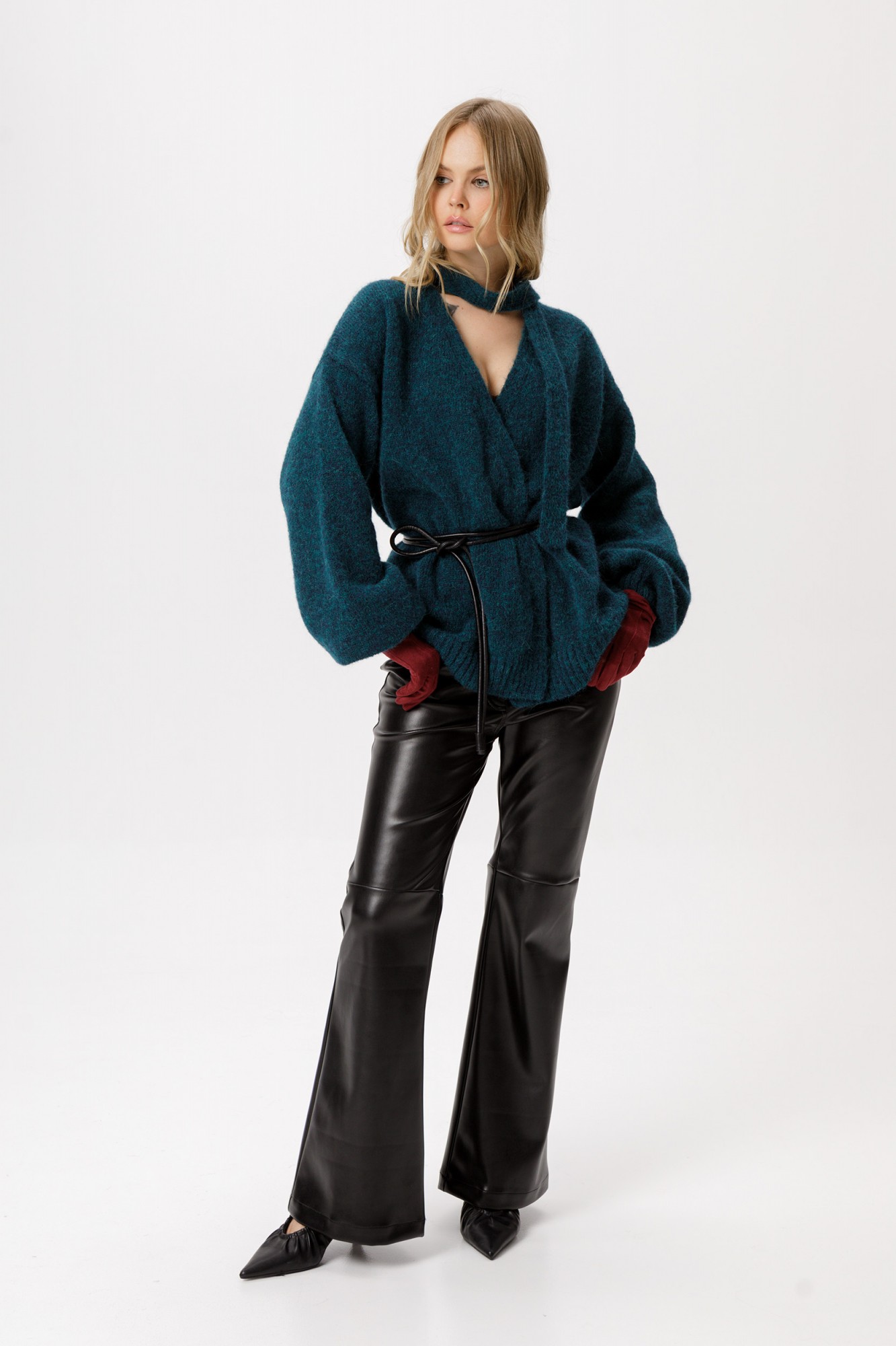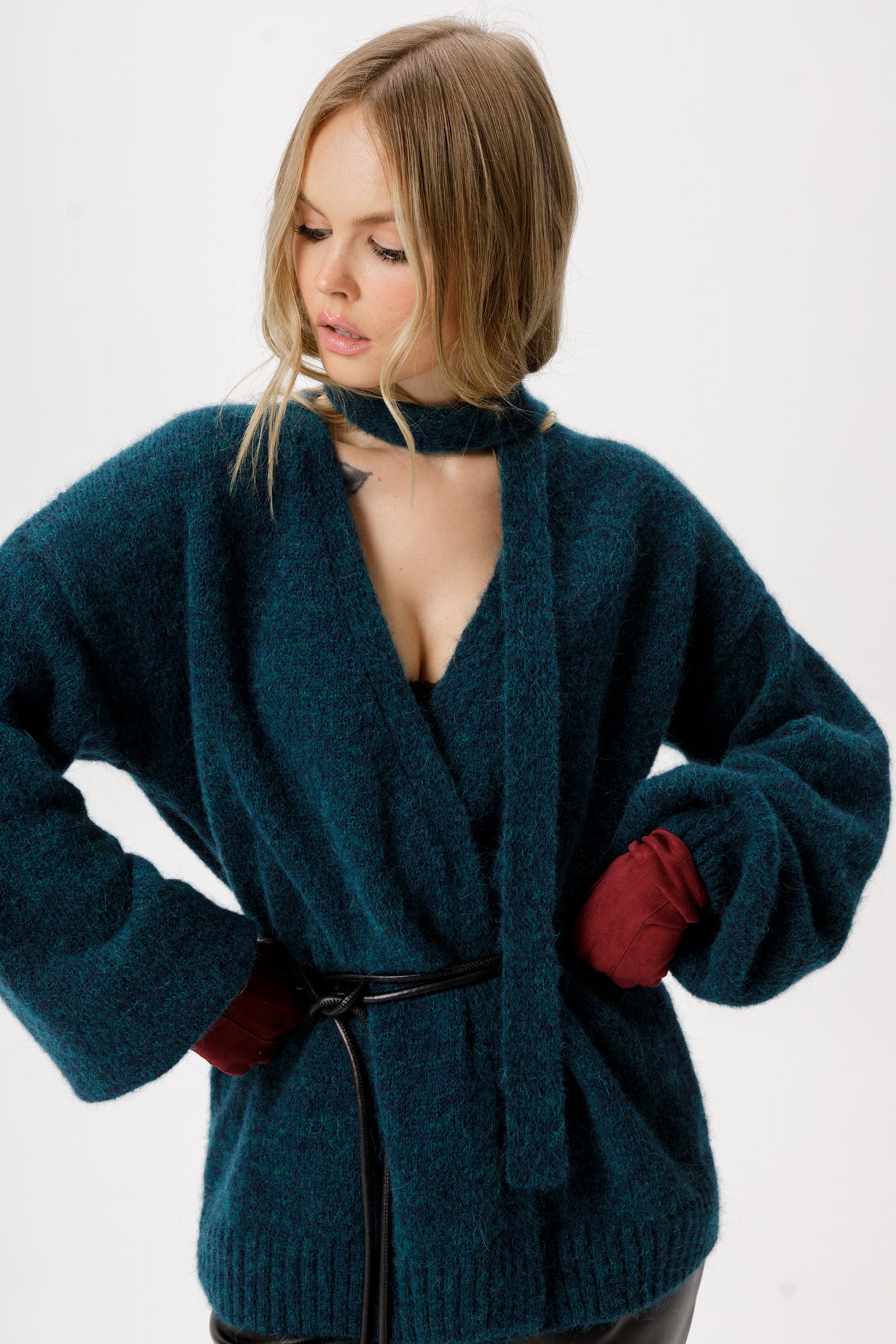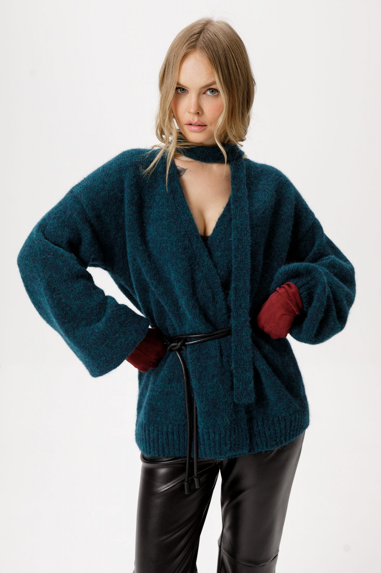 Вязаный свободный кардиган из шерсти альпака.