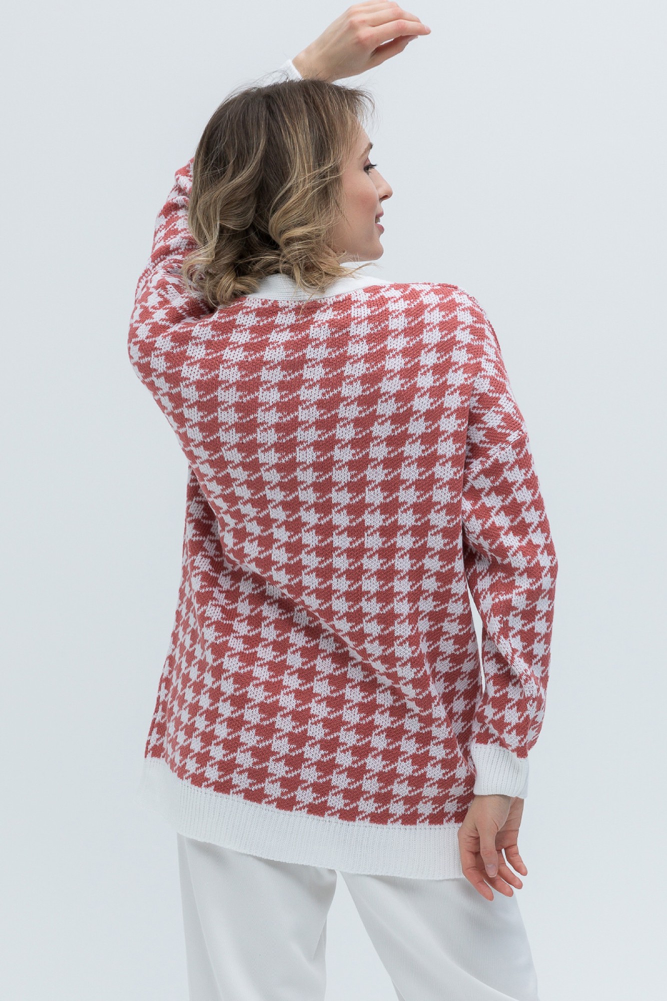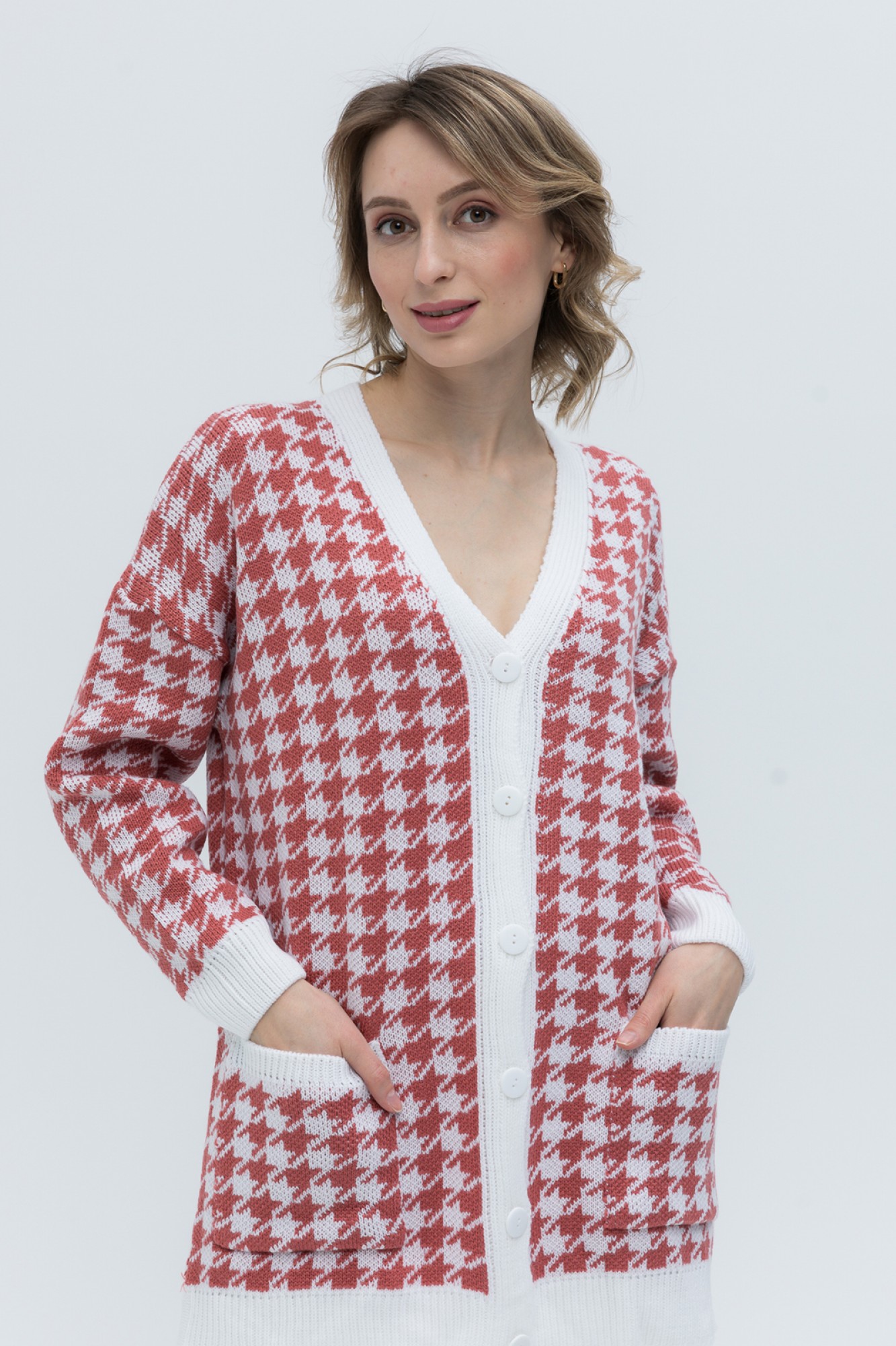 Кардиган RomGil ТЗ692П белый, темно-коралловый