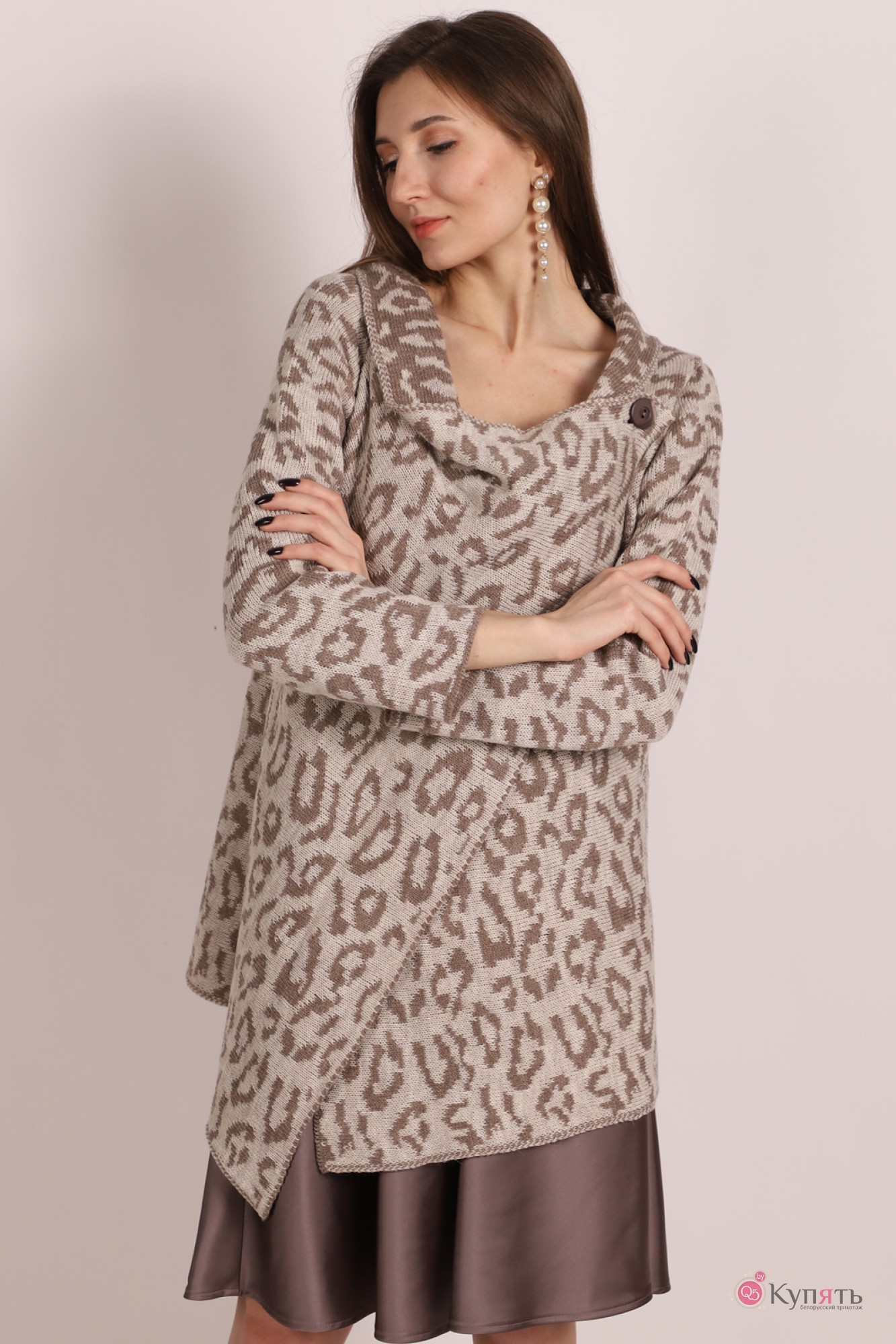 Кардиган RomGil ТЗ 190/158-164 светло-бежевый/коричневый с ID товара 274389