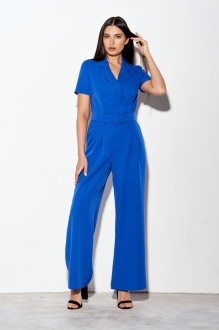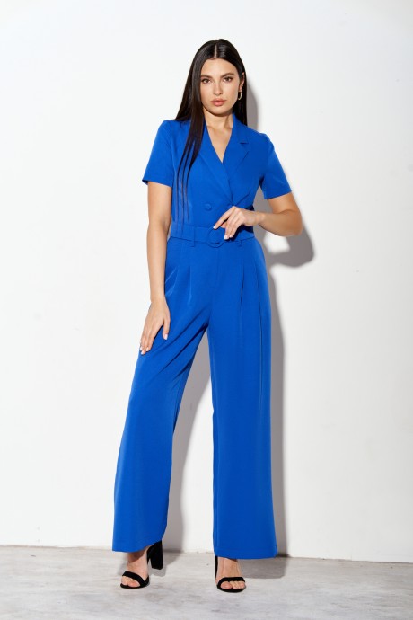 Комбинезон женский полуприлегающего силуэта со втачными рукавами, пиджачным воротником и мягкими складками по переду застегивается на молнию, петли и пуговицы; в боковых швах карманы.