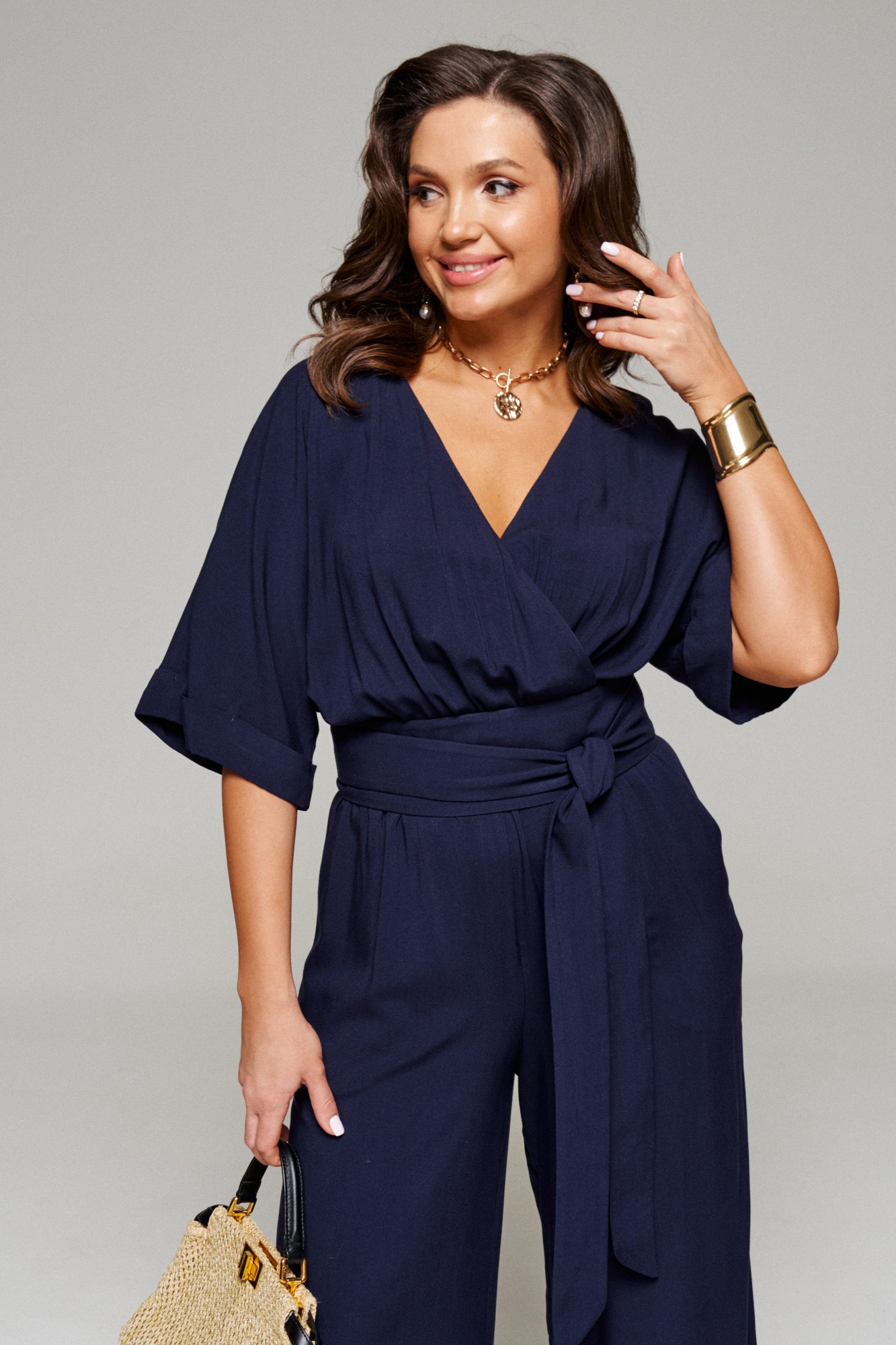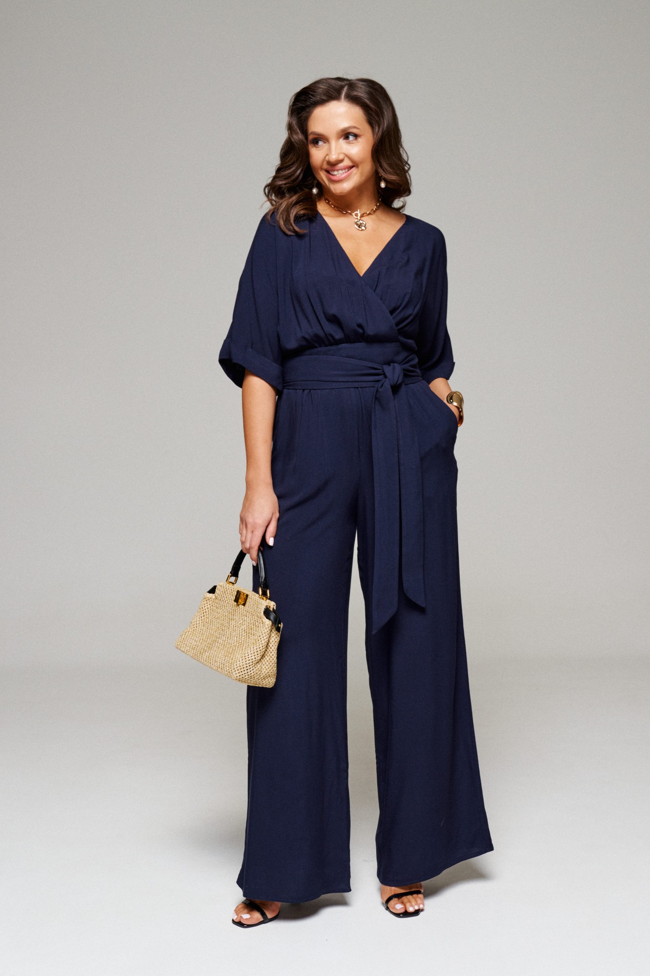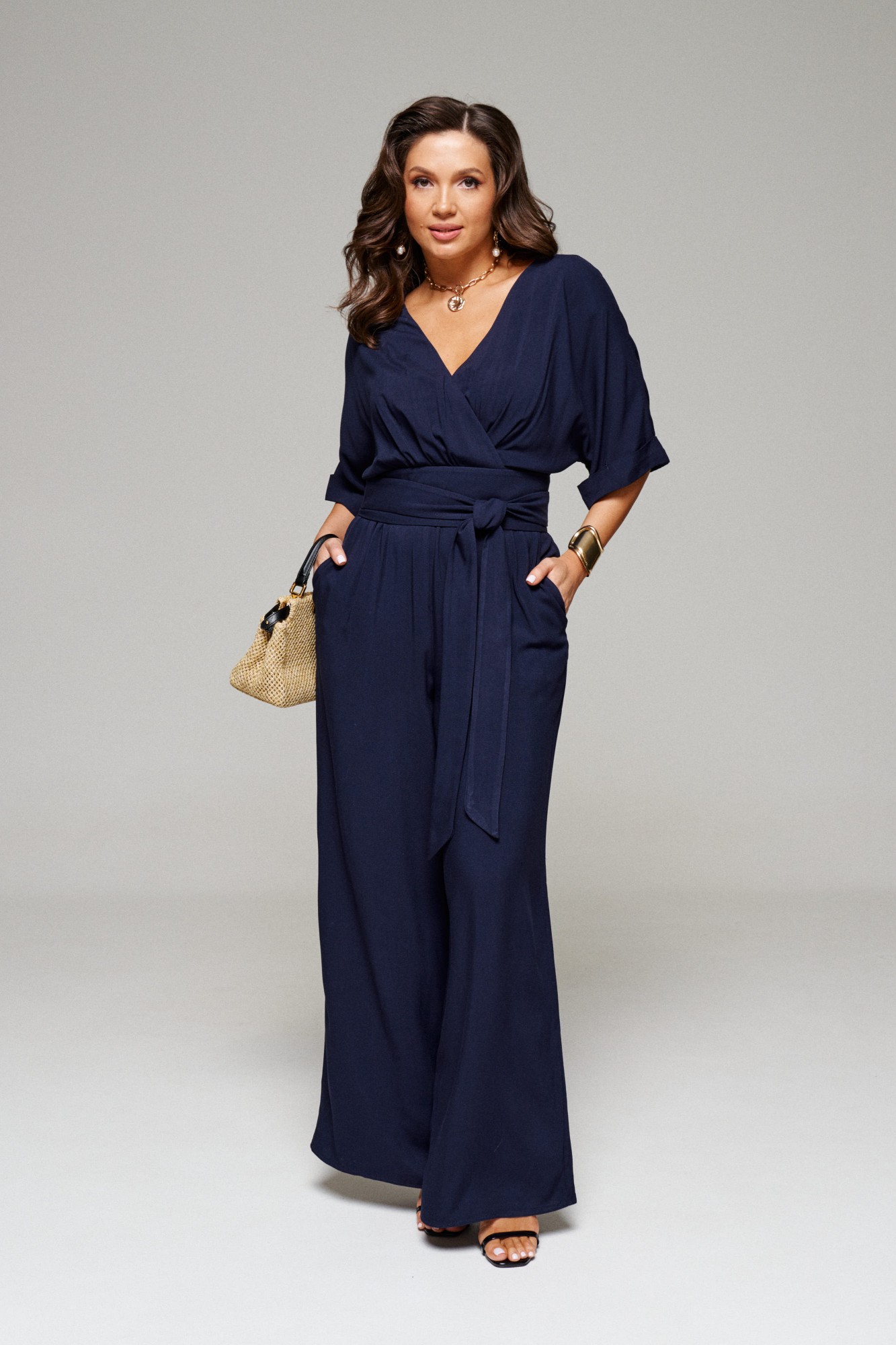 Комбинезон изготовлен из натурального вискозного полотна.
