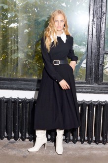 Комбинезон полуприлегающего кроя, рукав втачной, по горловине стойка, отрезной по линии талии, по переду и спинке лифа талиевые вытачки, по брюкам складки, в боковых швах карманы. По спинке средний шов с застёжкой на потайную молнию. Воротник съёмный из хлопка с декоративной отделкой. В комплекте съемный ремень.