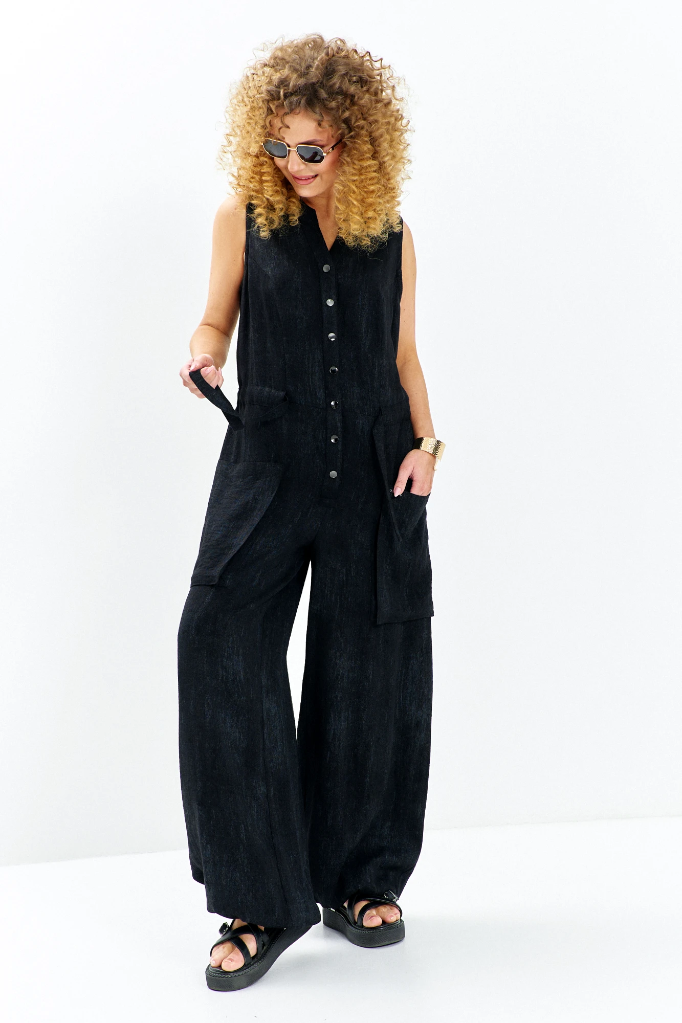 Комбинезон является удобной и универсальной вещью в гардеробе. Он может состоять из брюк, шорт. Выпускаются модели с широким и зауженным кроем.