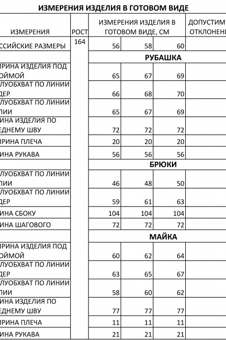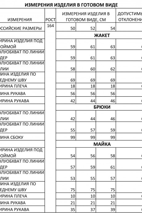 Таблица размеров