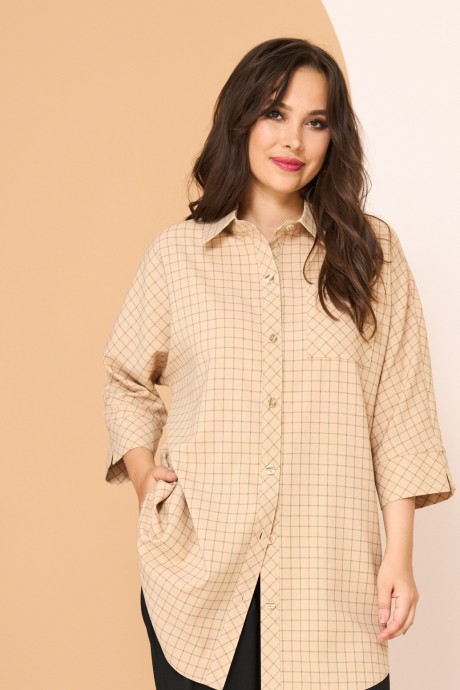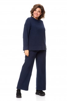 Комплект женский 2-х предметный (блуза, брюки). Блуза прямого силуэта, рукав "летучая мышь". Низ фигурный, застежка на планку и пуговицы, воротник-стойка. По низу рукава манжет, по полочке с левой стороны накладной карман. Брюки в спортивном стиле, пояс на резинке, по бокам карманы.