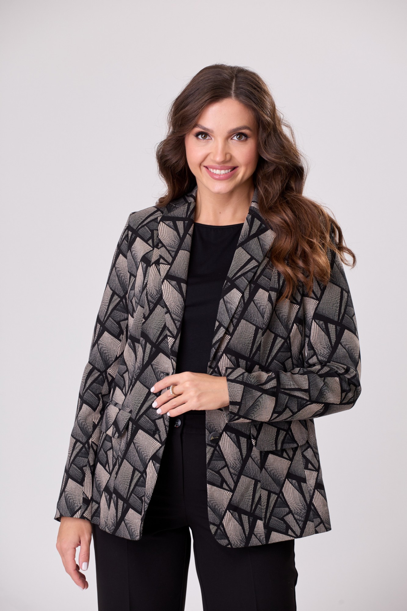 Брючный костюм БелЭльСтиль 203/586 геометрия черная с ID товара 352570