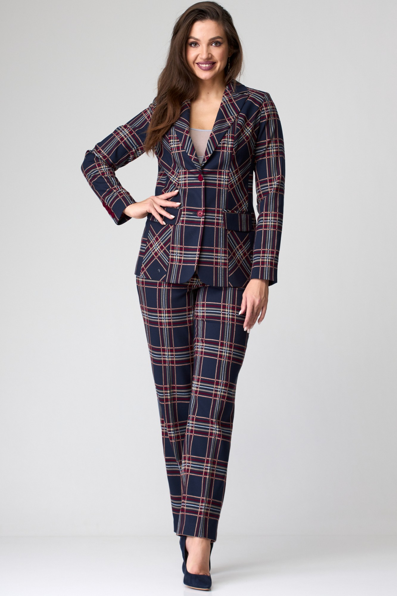Брючный костюм БелЭльСтиль 203+596 сине-красная клетка с ID товара 356678