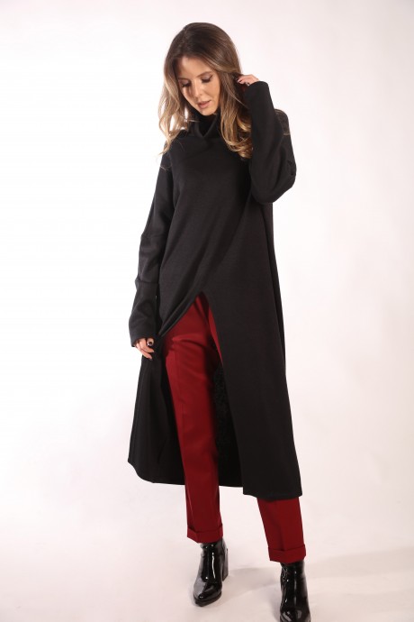 Комфортное платье из мягкой трикотажной ткани длины «миди». Модель платья свободного объёма, горловина «стойка», стильный элемент - широкий разрез спереди, от талии к низу. Такое платье отлично дополнит осенне-зимний гардероб и станет хорошим вариантом для офисного и повседневного образа.