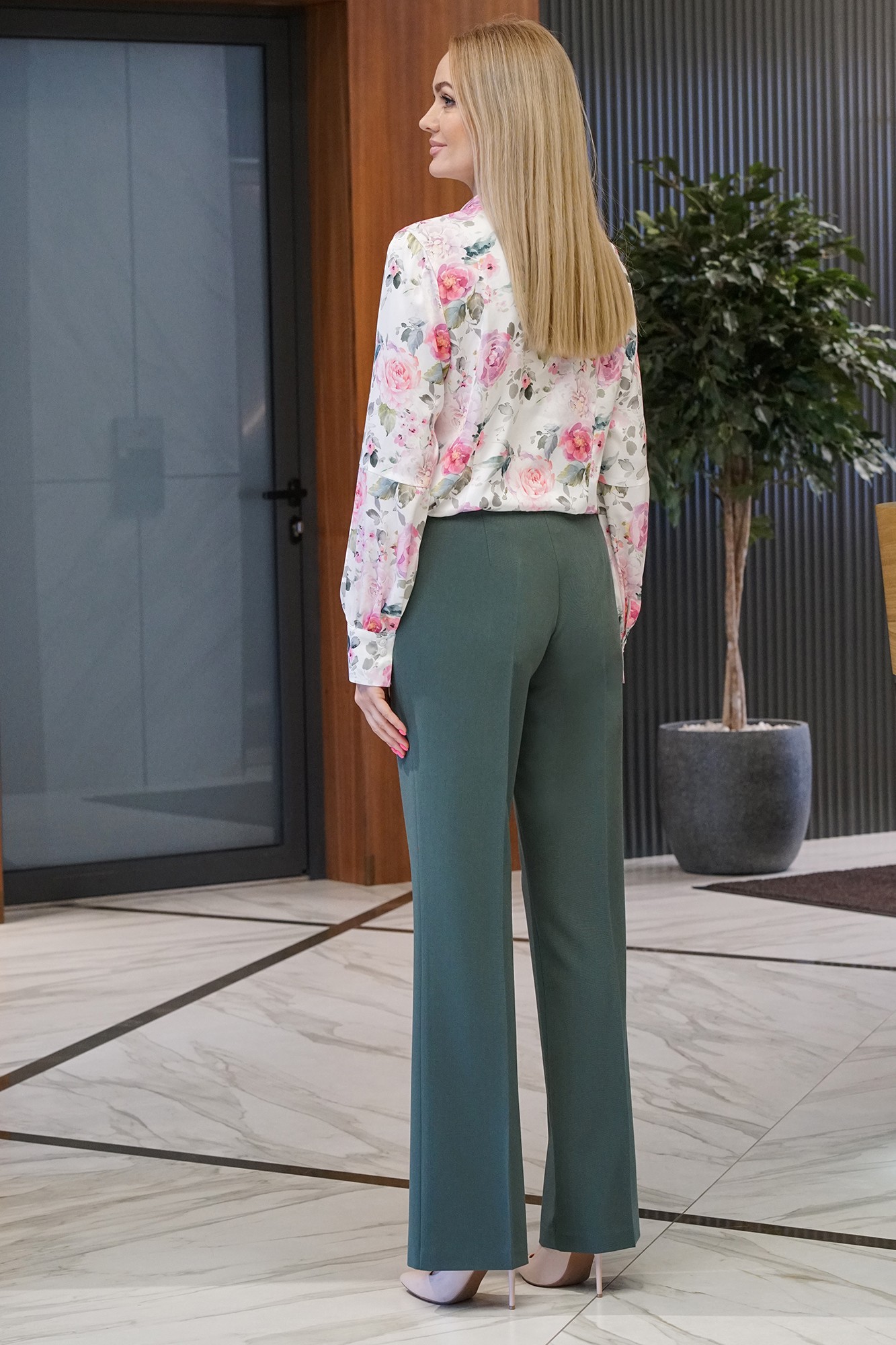 Брючный костюм ALANI COLLECTION 1869 зеленый + цветы с ID товара 360920