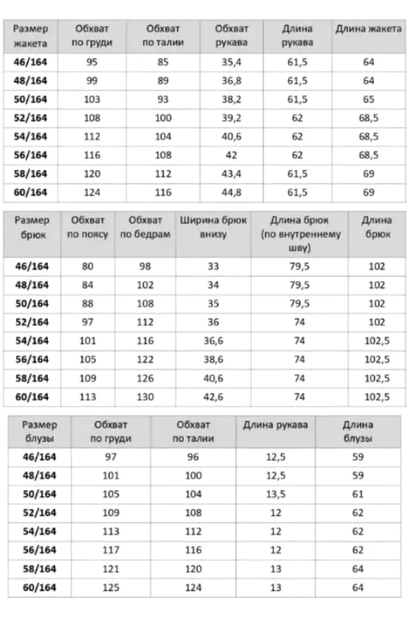 Жакет, брюки 95%П/Э, 5%спандекс. Блуза 100%П/Э