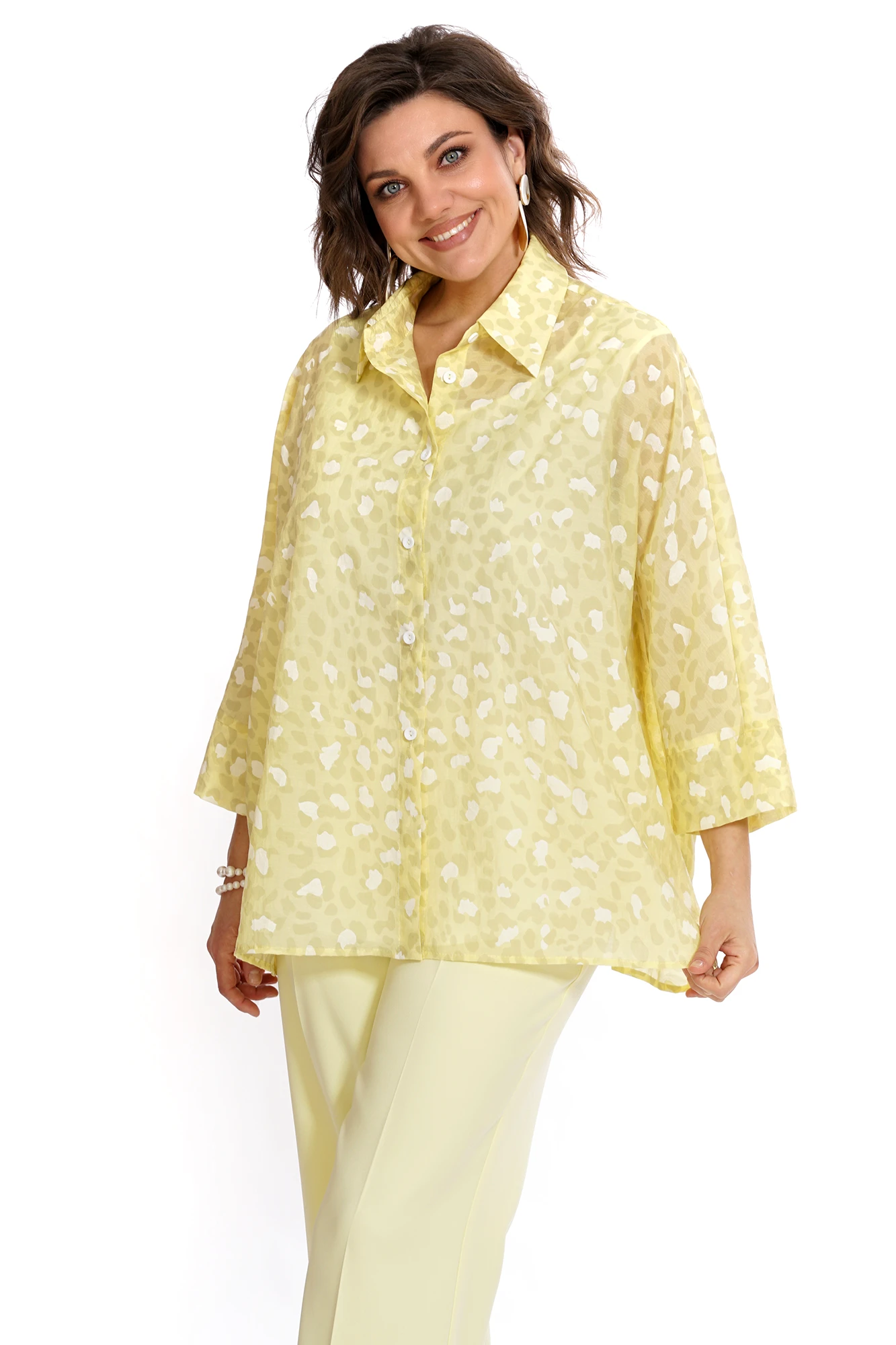 Блузон: 62%вискоза, 25%нейлон, 14%полиэстер; Блуза: 73%П/Э, 21% вискоза, 6%спандекс; Брюки: 65%П/Э, 33%вискоза, 2% спандекс