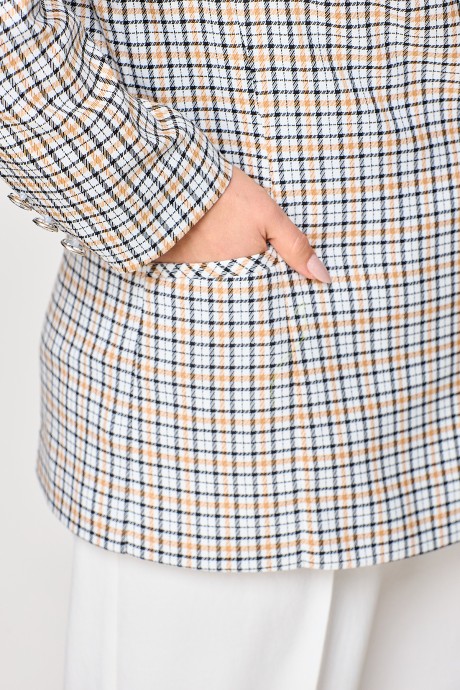Представьте себе величественную даму, идущую с изяществом и уверенностью, восхищающую всех своим непринужденным стилем. Её образ – это искусное сплетение элегантности и современной роскоши. На ней – женский брючный костюм, созданный для того, чтобы притягивать восхищенные взгляды. Пиджак, в котором она словно воплощает элегантность и власть, олицетворяет роскошь и стиль. Он выглядит как произведение искусства: однобортный, с центральной застёжкой на две изысканные пуговицы, создающие ощущение истинного роскошного шика. Отложной воротник с лацканом придает образу особый шарм и респектабельность. Спинка и перед пиджака украшены изысканными рельефами, которые подчеркивают женственные линии фигуры. Прорезные карманы в листочку дополняют его стиль и функциональность, а подкладка добавляет ощущение роскоши и комфорта. Брюки, с другой стороны, придают образу современную строгость и изысканность. Прямой покрой создает идеальные линии, подчеркивая изящную фигуру. Они выполнены из однотонной ткани, которая великолепно гармонирует с клетчатым пиджаком. Брюки с боковыми карманами добавляют удобство и практичность, а пояс на резинке обеспечивает комфорт. Этот брючный костюм – это не просто одежда, это произведение искусства, которое подчеркивает индивидуальность и утонченный вкус своей обладательницы. Он создан для того, чтобы притягивать восхищенные взгляды и оставаться в памяти как воплощение элегантности и стиля.