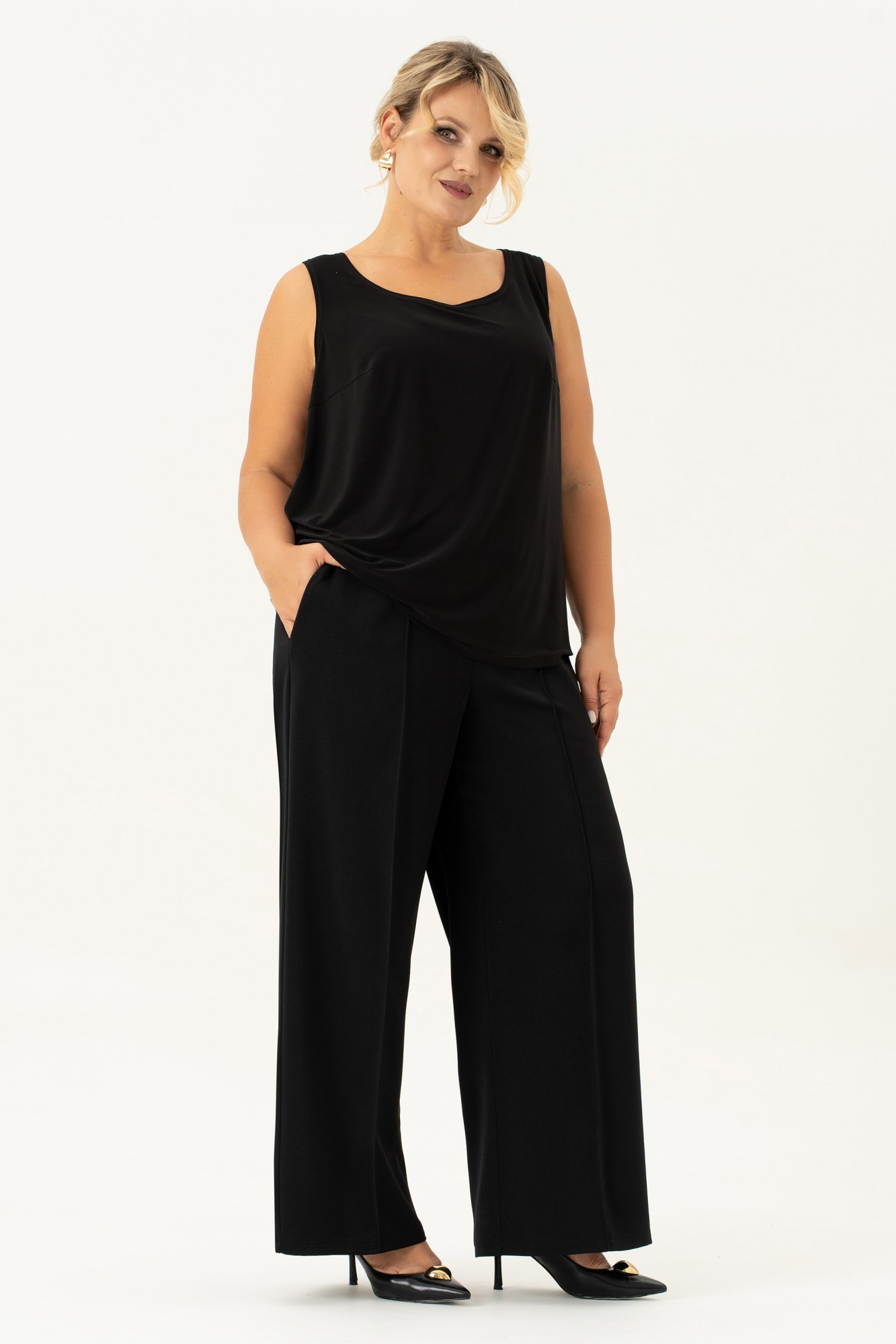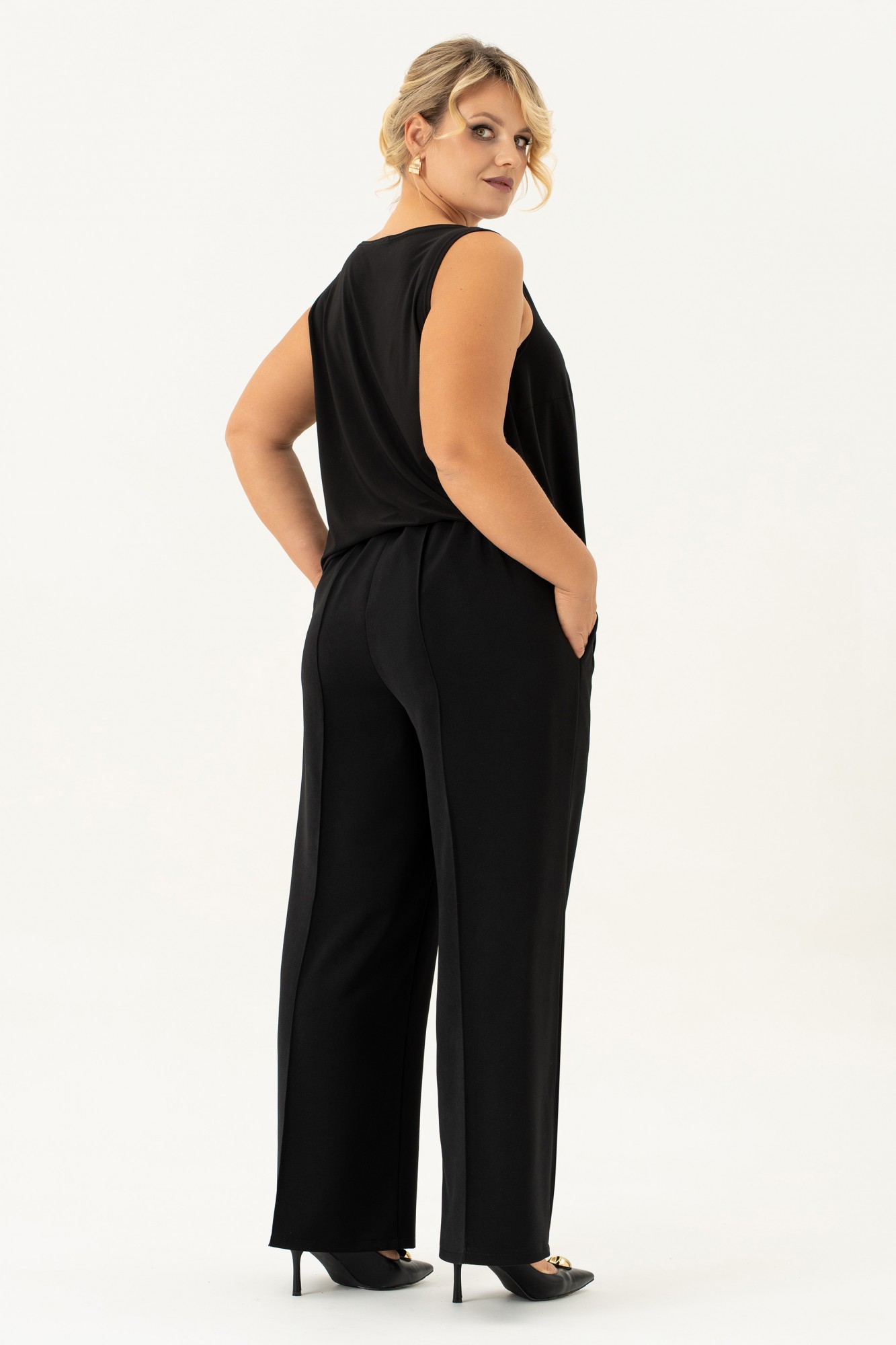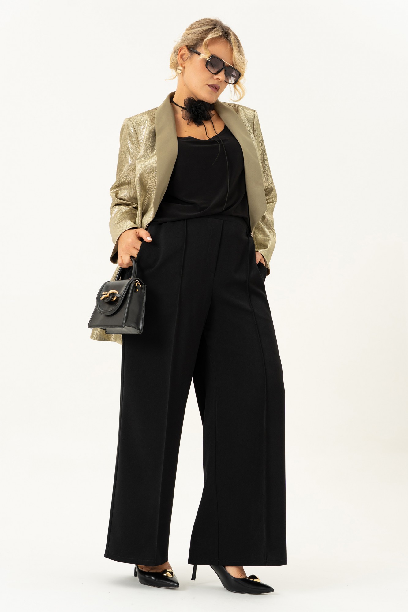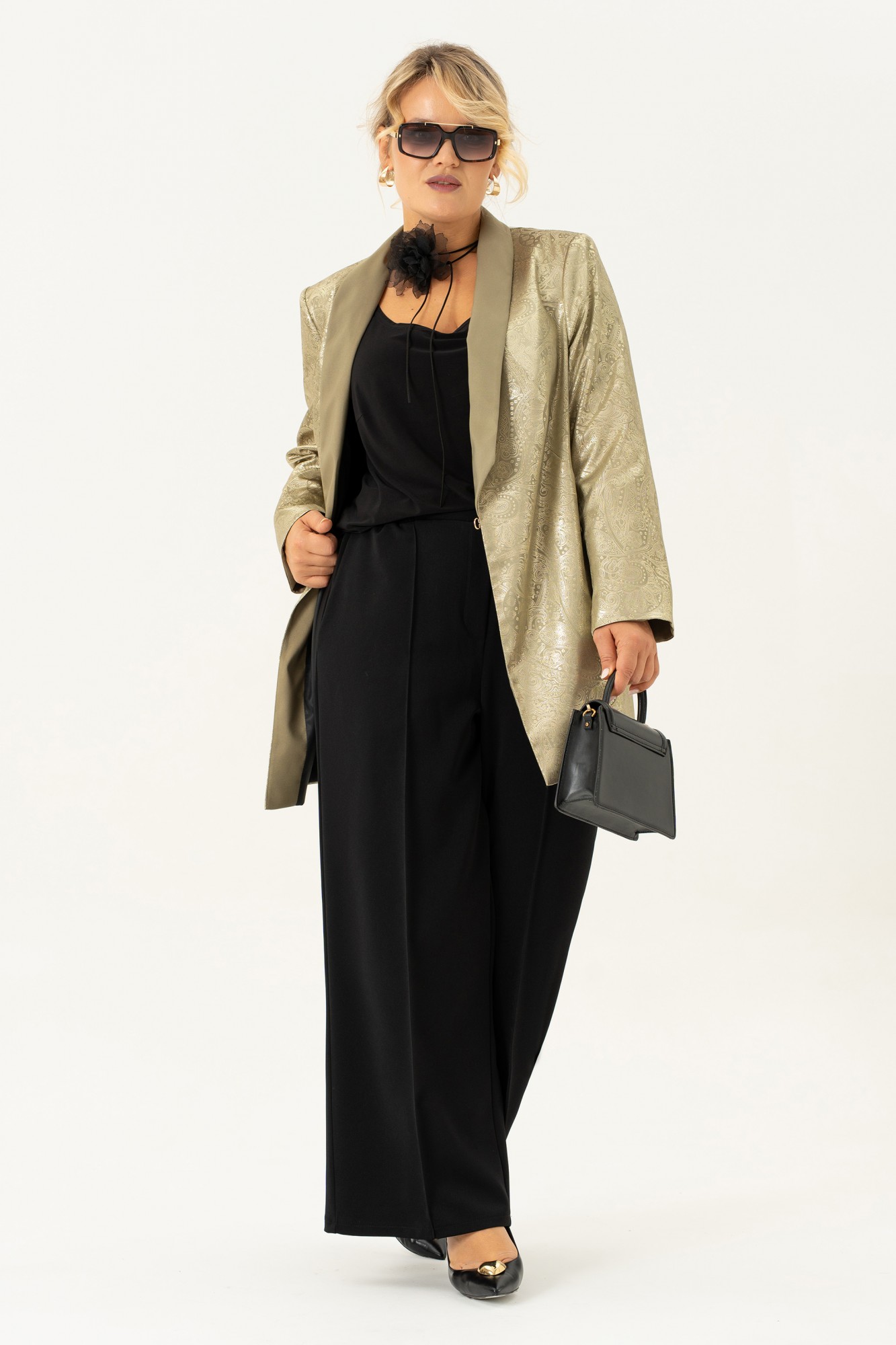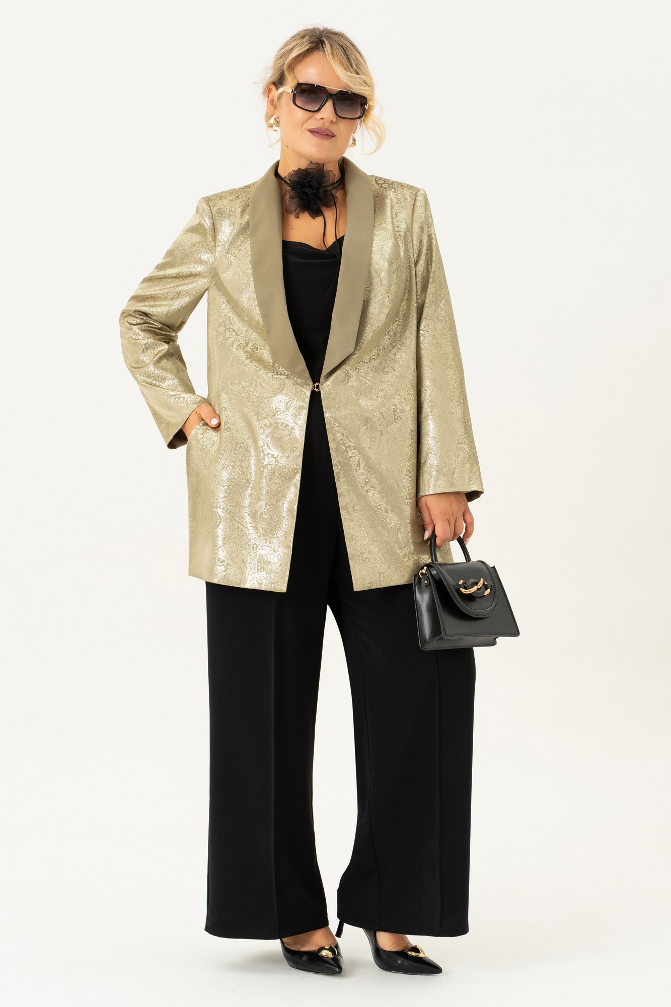 Этот комплект одежды идеально подходит для женщин, которые хотят выглядеть стильно и элегантно на любом мероприятии. Идеальный вечерний наряд, который придаст особый шик Вашему образу. Комплект состоит из брюк , блузы и жакета, и образует абсолютно классическую тройку. Неважно, это деловое собрание или праздничное мероприятие - этот брючный комплект подойдет для любого случая. Базовая модель прекрасно подчеркнет вашу фигуру и придаст вам очаровательный вид. Комплект выполнен из качественной ткани и дополнен жакетом с застежкой на декоративный крючок , которые делают его еще более привлекательным и уникальным. На жакете обработан воротник шалька и карманы в фигурных рельефах. Жакет на подкладке с длинным рукавом. Блуза без рукава из стрейчевой ткани с нагрудными выточками. Брюки-палаццо на эластичной резинке с имитацией гульфика. По переду расположены карманы с наклонным входом. Нарядный вечерний комплект создаст модный образ на свадьбу, или на вечеринку, а так же подчеркнет Ваш стиль . Брючный комплект женский больших размеров отличается высокой степенью практичности и универсальности, приобретая один комплект- Вы получаете много образов, комплектуя элементы комплекта с другими вещами из своего гардероба!
