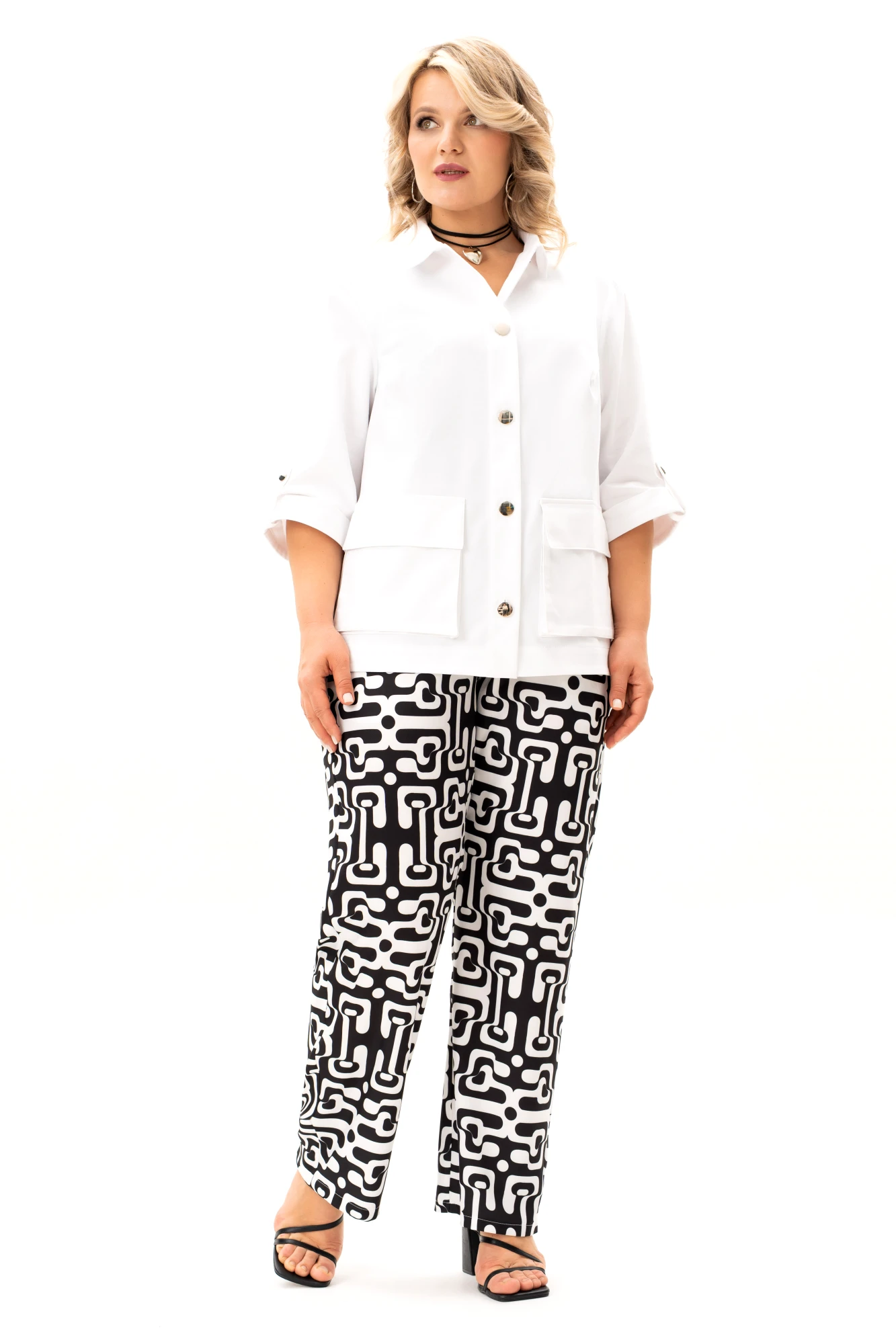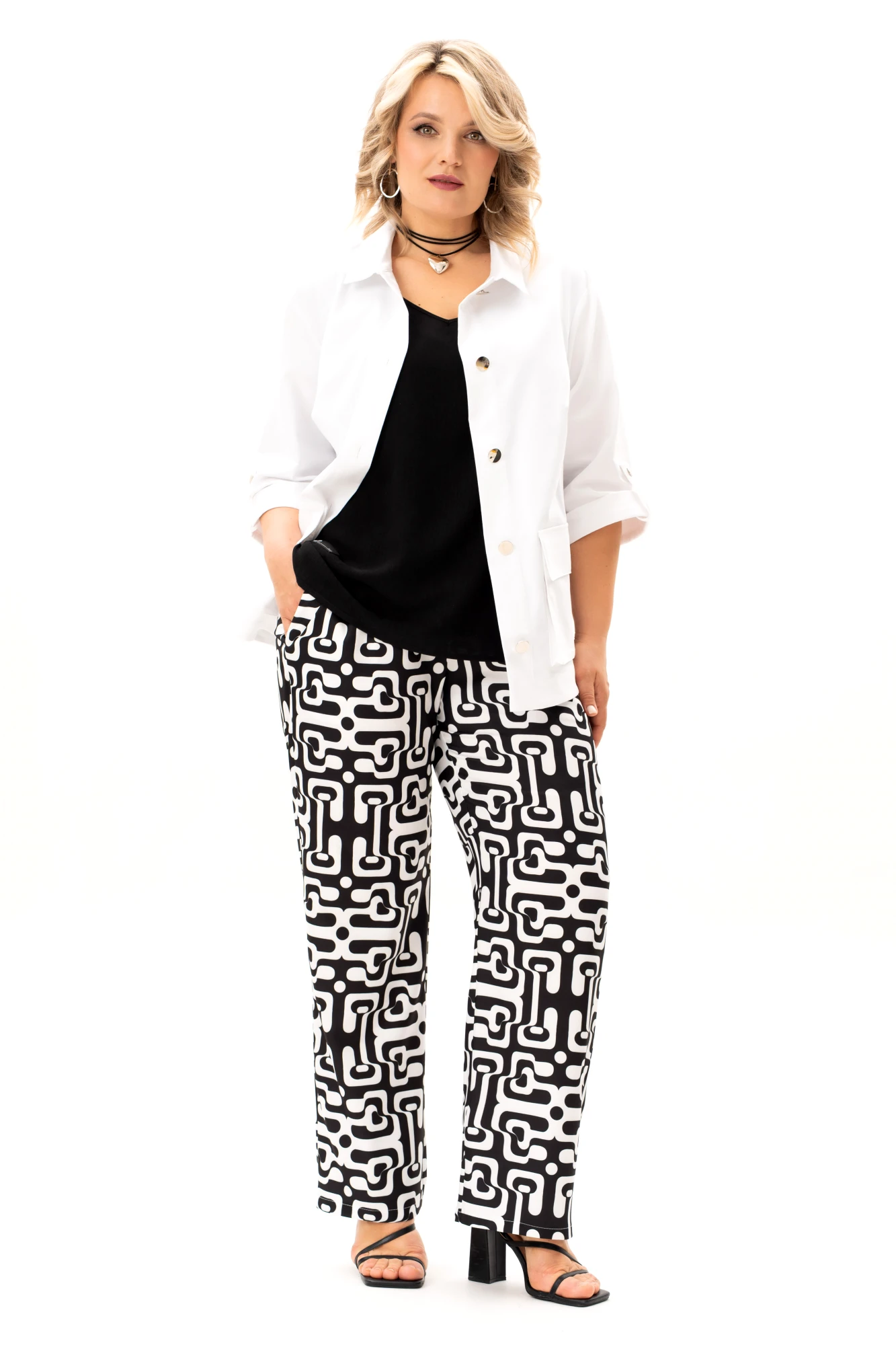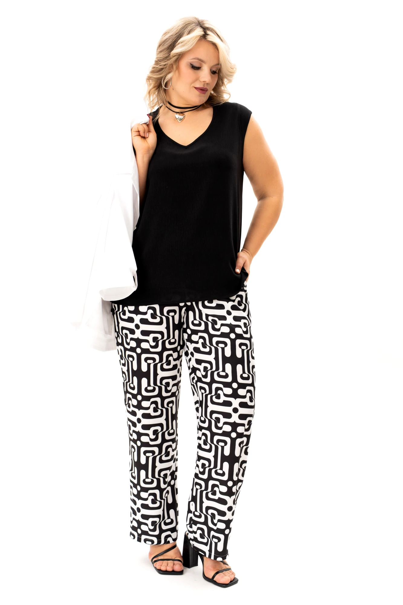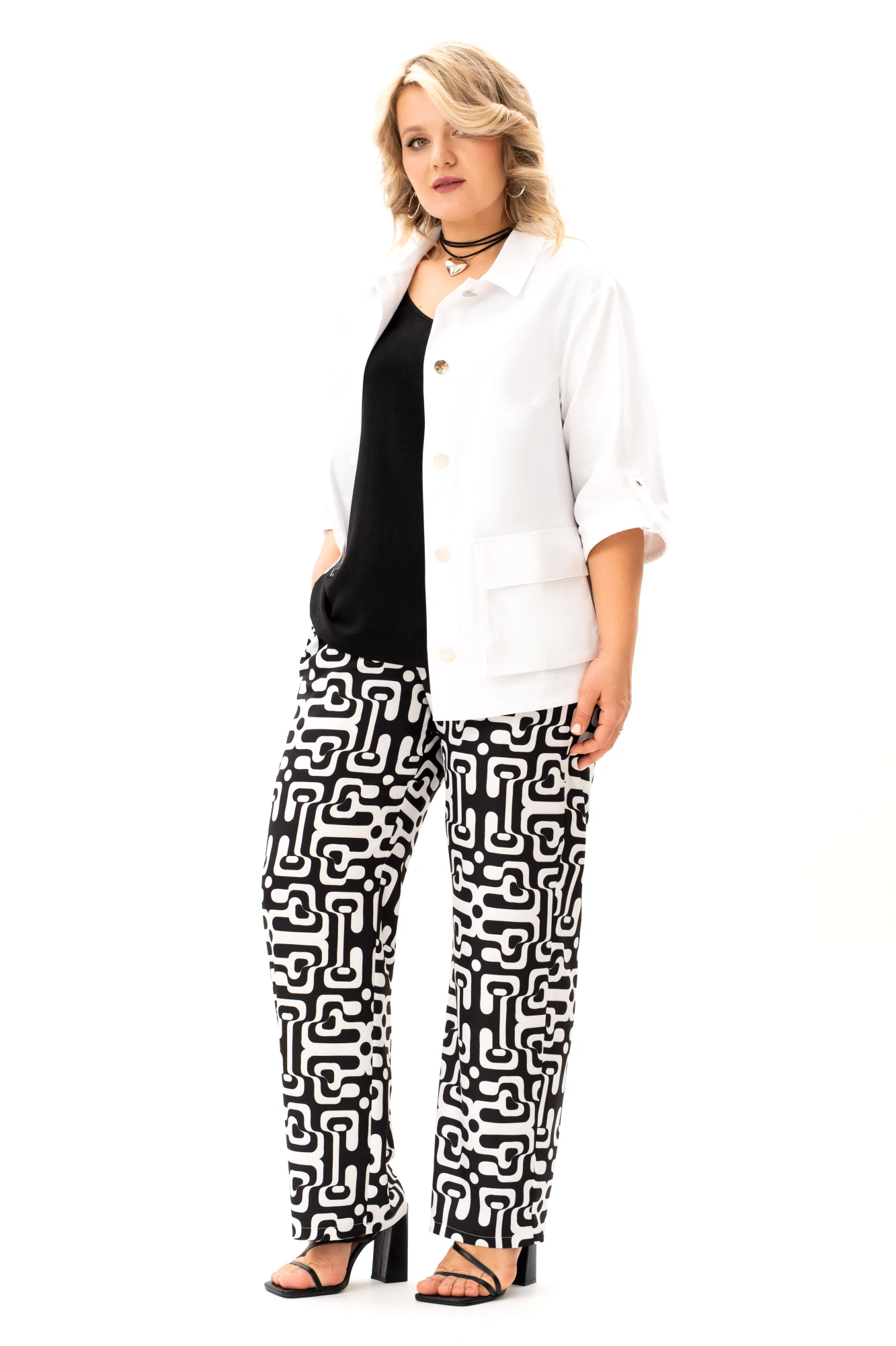 Брючный костюм ALGRANDA (Novella Sharm) A4130 тройка бело-черный