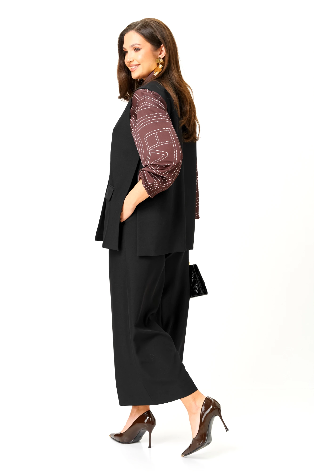 Брючный костюм AMUAR 1096 тройка черный, коричневый