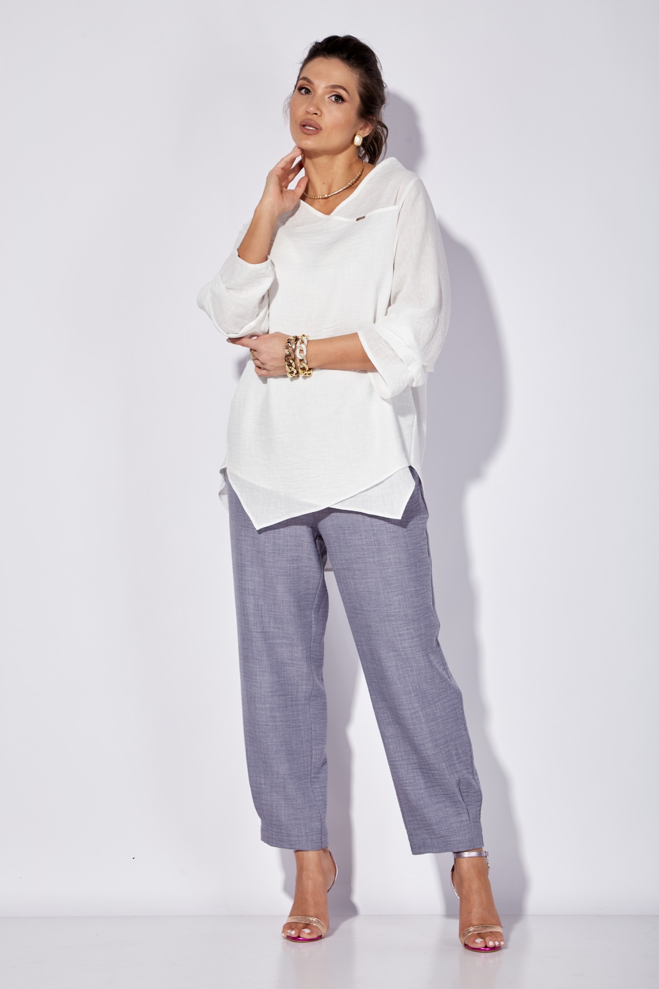 Брючный костюм Anastasia 1101 белый, голубой