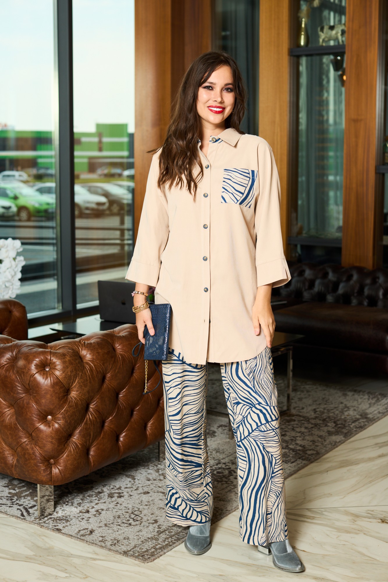 Брючный костюм Anastasia 853 ПЕСОЧНЫЙ, СИНИЙ с ID товара 347457