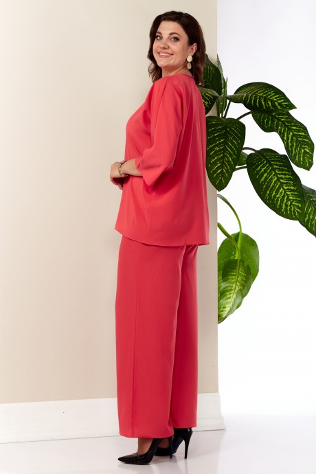 Комплект женский 2-х предметный (блузка, брюки) из блузочной ткани. Блузка прямого силуэта с цельнокроеным рукавом. Брюки прямые, на трикотажной кокетке.