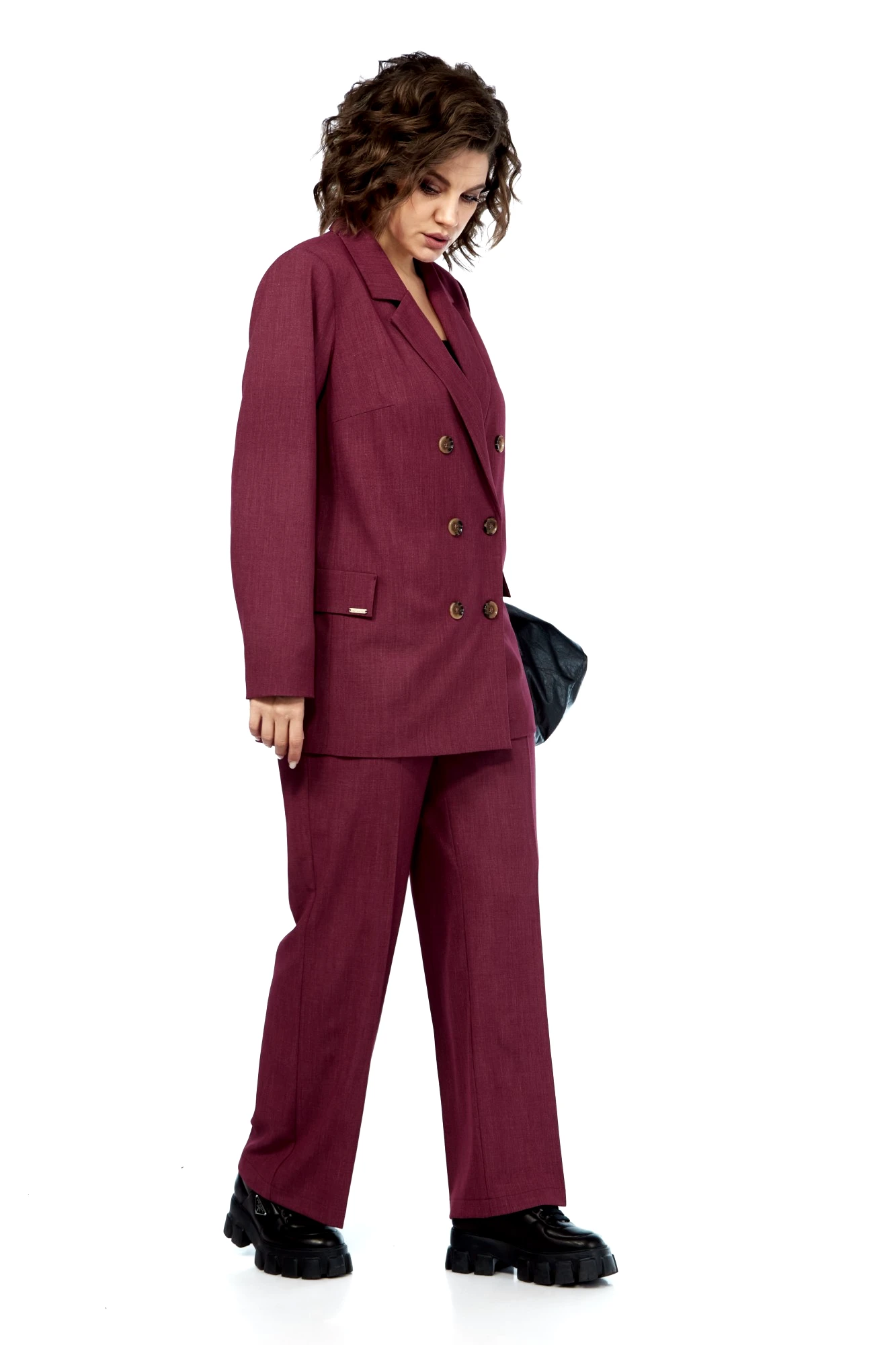 Женский брючный костюм — это идеальное сочетание стиля, комфорта и универсальности, которое станет вашим верным спутником как на деловых встречах, так и на торжественных мероприятиях. Изготовленный из высококачественной ткани, этот костюм обеспечивает легкость и приятные ощущения при носке, а его элегантный пиджак и классические брюки, подчеркивают вашу женственность и утонченность. Строгий и модный фасон делает его актуальным в любой ситуации, будь то офис, свадьба или выпускной вечер. Костюм изготовлен на подкладке с модным принтом, что добавляет шарма к вашему образу. Выбирая этот костюм, вы выбираете уверенность в себе и безупречный стиль, который никогда не выйдет из моды. Позвольте себе быть великолепной в каждой детали! Брючный костюм женский — это не просто одежда, а воплощение элегантности и стиля, которое идеально подходит для современной женщины. Костюм брючный женский деловой станет вашим незаменимым спутником в офисе, подчеркивая вашу профессиональность и уверенность. Женские брючные костюмы классические всегда остаются в моде, благодаря своему универсальному дизайну и высокому качеству материалов. Женские брючные костюмы с пиджаком создают гармоничный и завершенный образ, который подходит как для деловых встреч, так и для вечерних мероприятий. Костюм с брюками осенний женский обеспечит вам комфорт и легкость в осенние дни. Этот костюм станет вашим любимым выбором для любого сезона, будь то весна, лето или осень. Выбирая женский брючный костюм от Anastasia, вы выбираете стиль, комфорт и уверенность в себе. Костюм женский 2-х предметный: жакет на подкладке и брюки. Жакет полуприлегающего силуэта: бочок с выточкой по полочке, по спинке средний шов. Застежка двубортная, карман клапан "обманка". Рукав вточной двухшовный. Брюки прямые со стрелками. Застежка по передней части на молнию. Пояс отрезной, по бокам вставлена резинка.